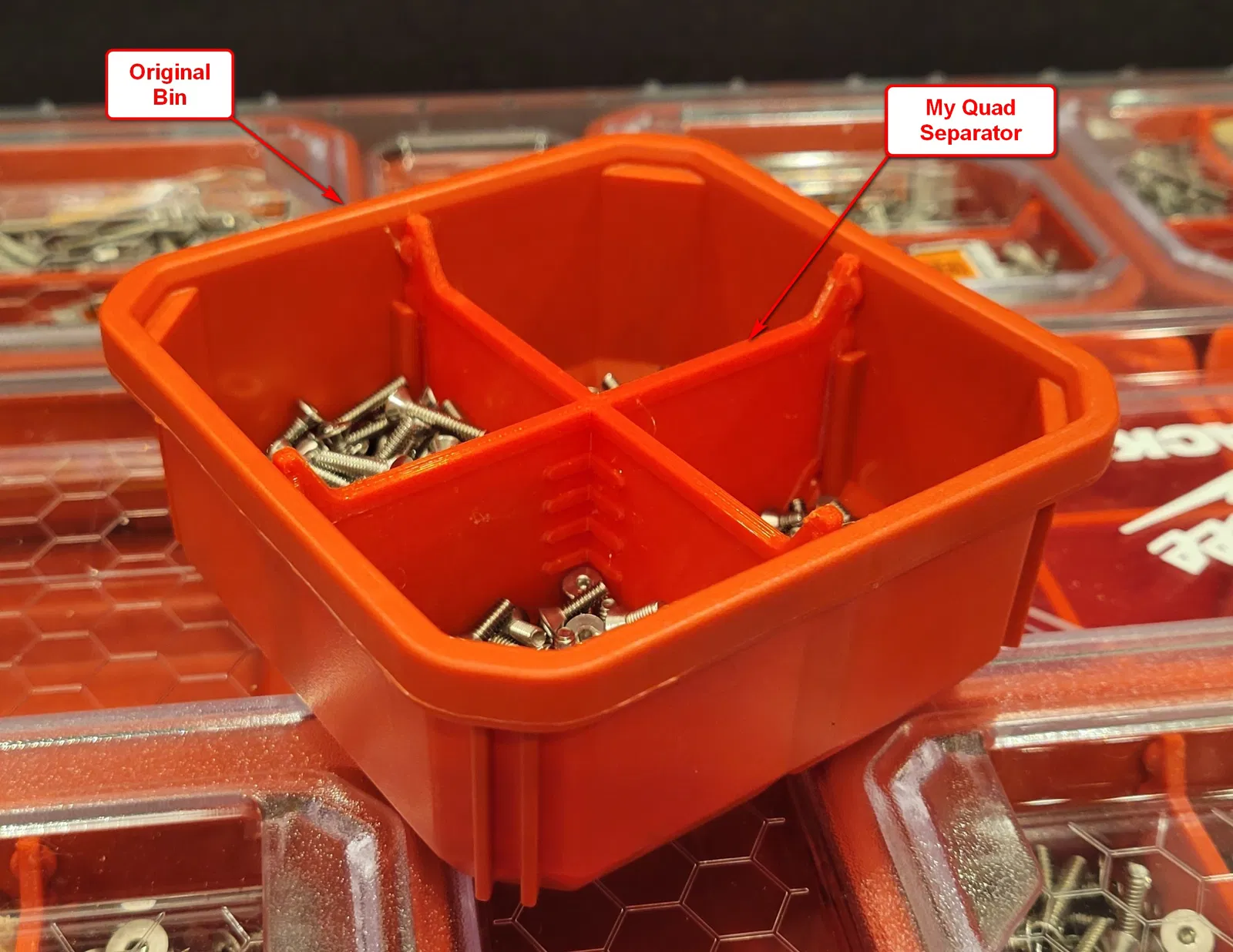 Mình làm một Quad-Separator để chia khay vuông thành bốn khoang 1/4. Cũng có bản Quad “clipped” dành cho khay vuông khi đặt ở vị trí khay chữ nhật.