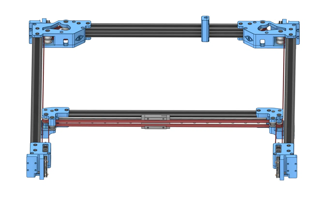 Hệ thống CoreXY belt tensioning mới — dây đai motor AB giờ có thể căng từ mặt trước của máy, tương tự gantry Voron