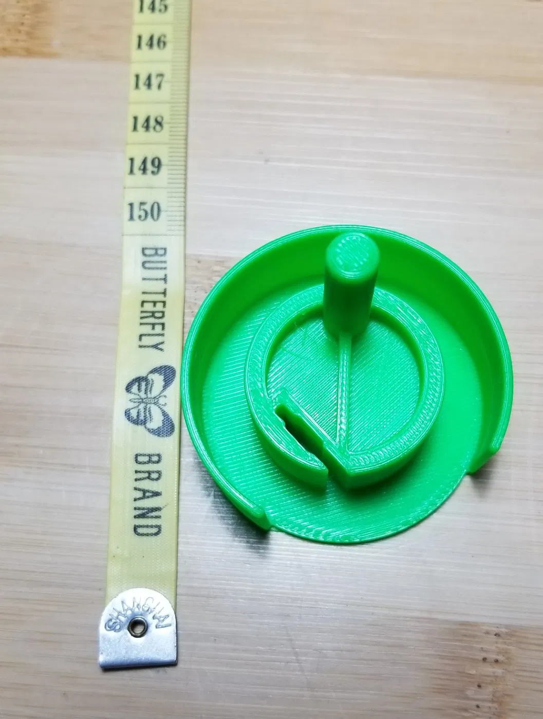 Mình remix lại thiết kế để thước dây 150 cm (60 inches) có thể cuộn vừa, chứ mấy phiên bản khác thì không làm được. Mình cũng thêm một cái tay cầm nhỏ để quay cuộn lại nhanh hơn.