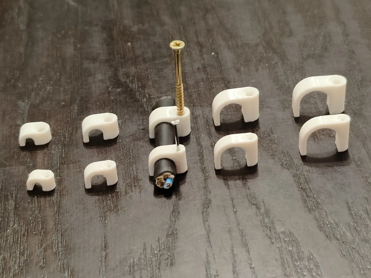 Mẫu Cable holders/kẹp giữ dây cáp gắn tường cho dây đường kính 4–12mm (4, 6, 8, 10, 12mm). Mỗi kích thước có 2 phiên bản: bắt vít 3mm hoặc đóng đinh 1,2mm.