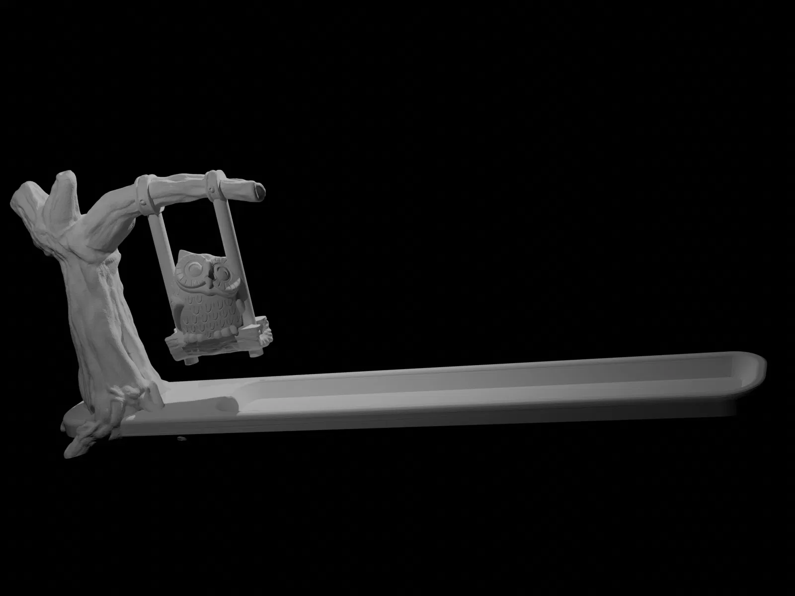 Bản remix Owl/Tree/Swing Incense Holder từ mẫu của Eng. Yehia: nới lỗ cắm nhang lớn hơn, gia cố điểm gắn dây xích đu vào nhánh cây để không gãy khi tháo support, và canh nhang luôn ở giữa để tro rơi đúng vào chén hứng.
