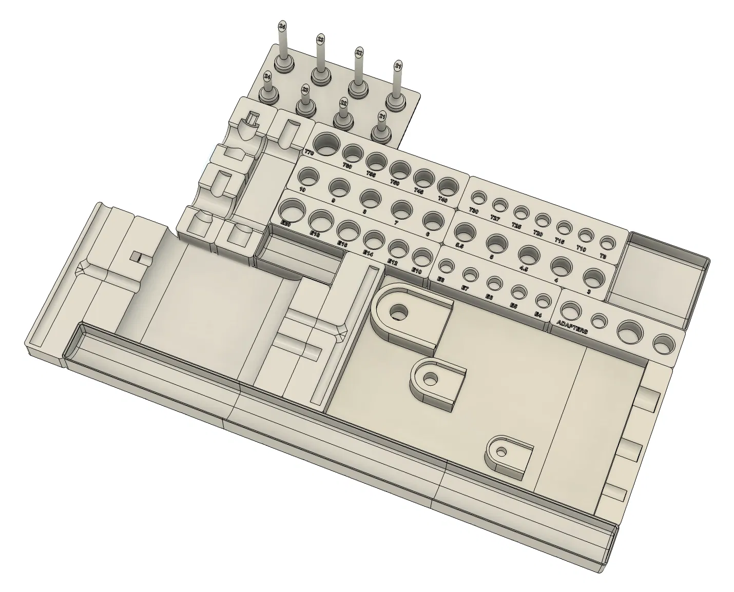 Đây là file Fusion 360 chứa các khay (bin) Gridfinity thiết kế custom, dành riêng cho bộ dụng cụ mình đang có. Bạn có thể dùng làm nguồn tham khảo hoặc làm điểm khởi đầu để tự thiết kế bin theo nhu cầu. Gói này gồm: