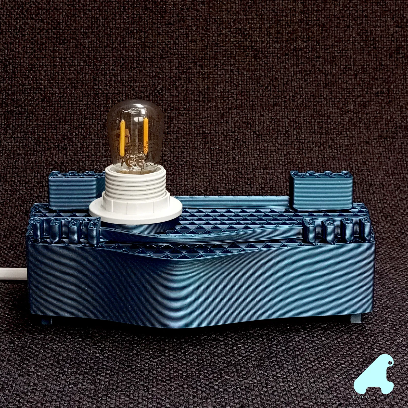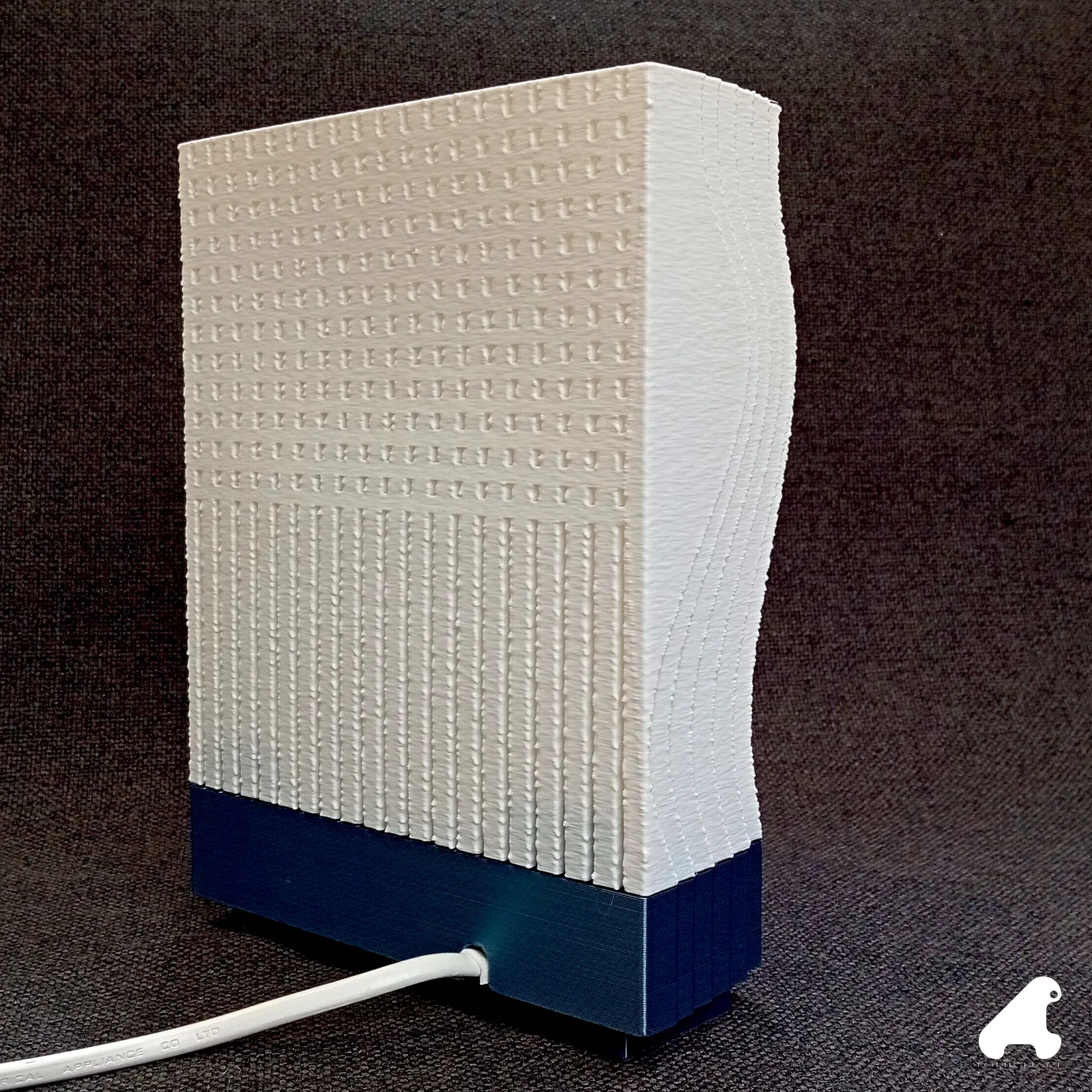 PHANTOM LAMP là đèn để bàn lấy cảm hứng từ các gợn sóng bề mặt, có rãnh tạo relief và in “fuzzy skin”. Thiết kế kèm hệ thống thông gió từ đế lên chụp đèn, dùng đui E14 với bóng LED, dễ in trên Bambulab A1.