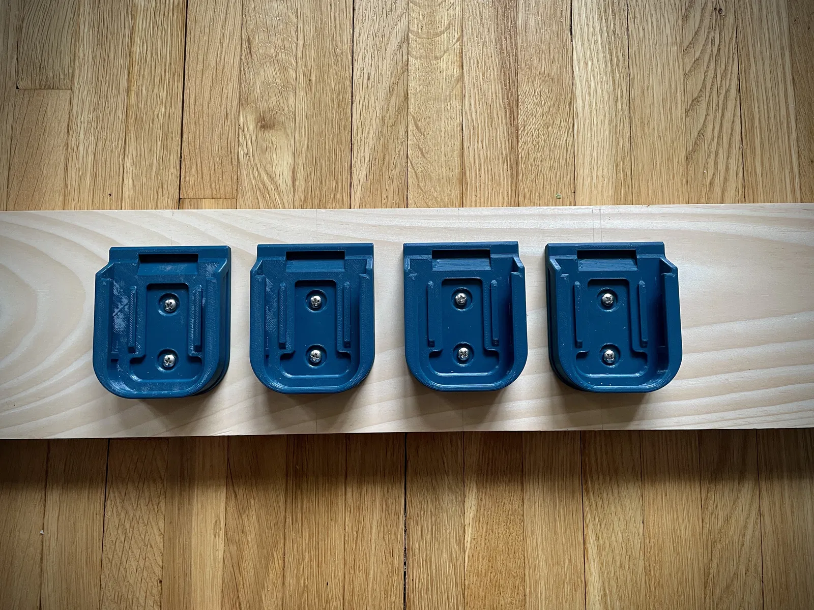 Bộ kẹp gài pin Makita gắn được lên tường/kệ để sắp xếp pin gọn gàng. Có thể lắp nhiều hướng, pin bấm vào ngàm chắc chắn. Gồm 2 file: bản có support dựng sẵn (hợp layer 0.20) và bản không support.