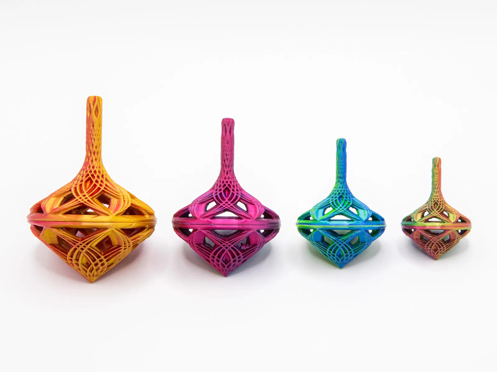 Nếu ai tò mò: mình dùng MatterHackers Quantum filament cho tất cả, trừ cái top nhỏ nhất trong bộ 4 cái ở hình. Cái nhỏ nhất là OVV3D Tri-Colors Red-Yellow-Blue.
