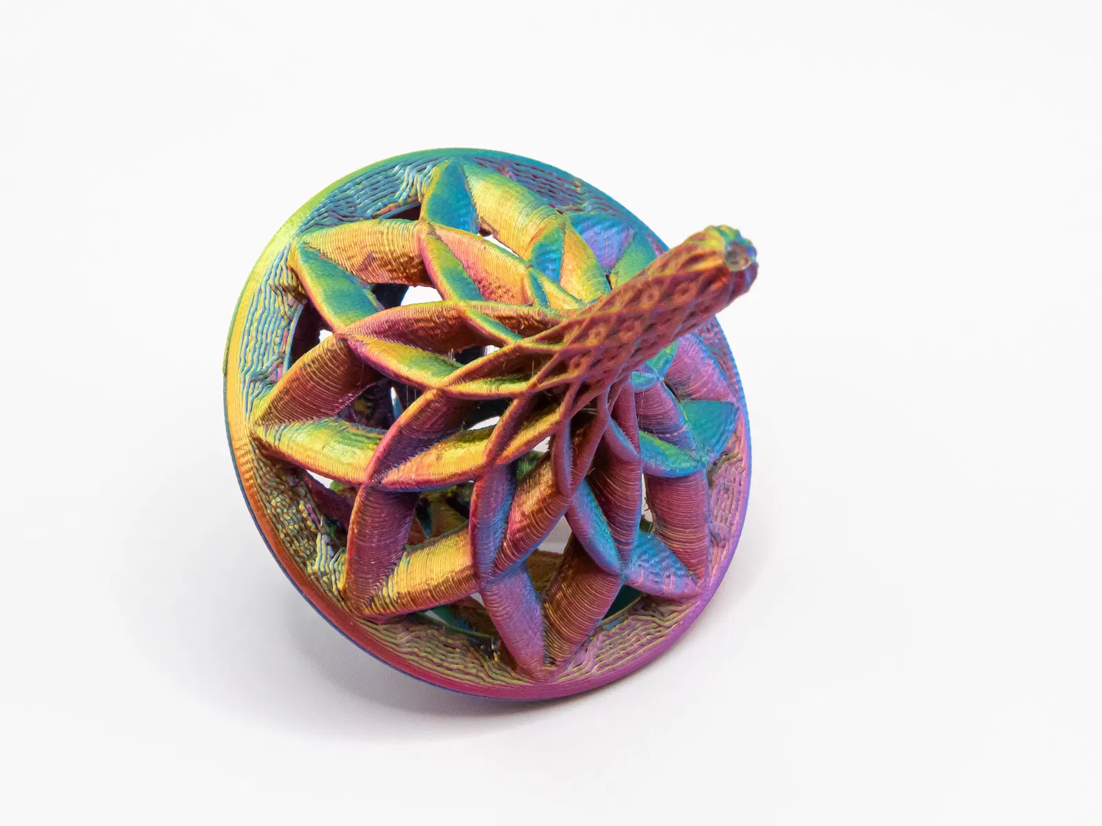 Mẫu con quay “Ultimate Open Lattice” họa tiết 8 điểm, in nhanh – dễ – vui. Lưới hở tạo hiệu ứng hoa văn đổi theo góc nhìn và tốc độ quay. Quay tốt khoảng 15–20 giây, hợp in nhiều màu hoặc rainbow filament.