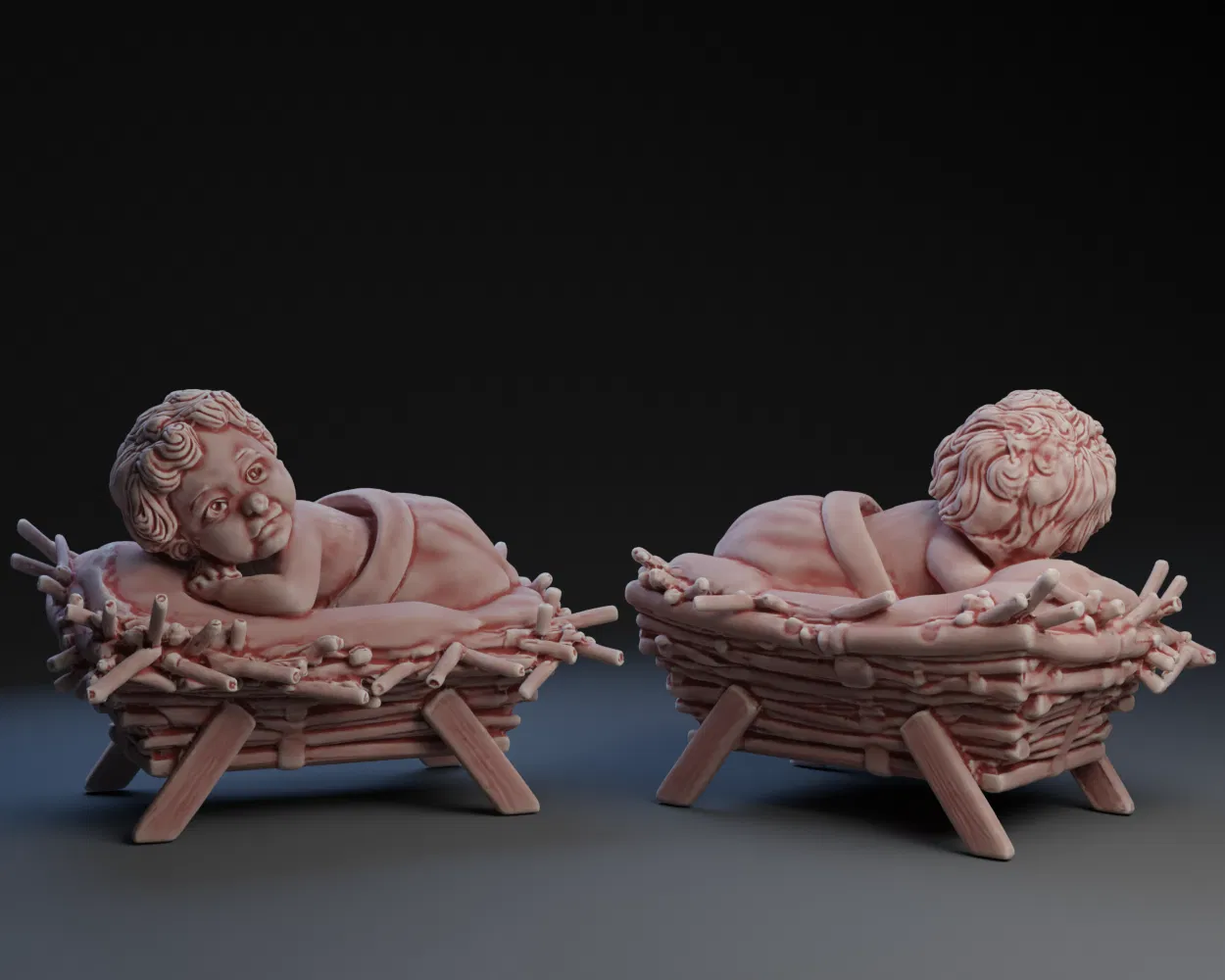 - Màu sắc: Sau khi in xong, bạn có thể sơn màu thủ công để mô hình thêm phần sinh động và giống thật hơn, với tông màu nâu cho máng cỏ và màu da cho Chúa Hài Đồng.