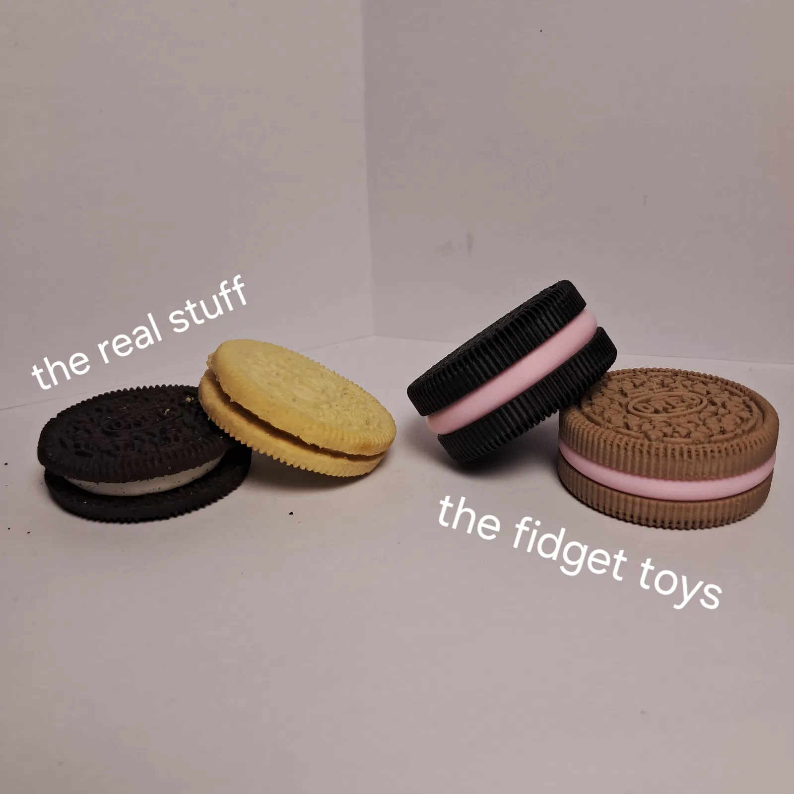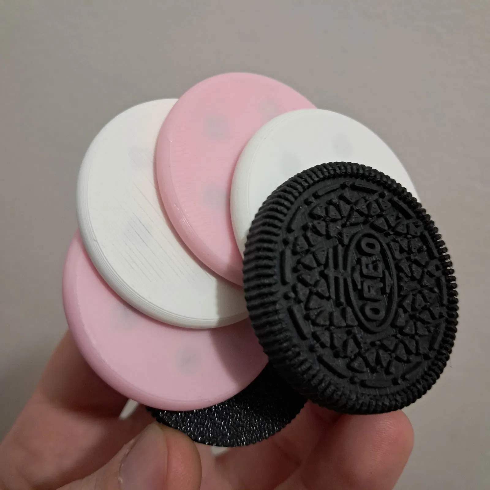 Đồ chơi fidget kiểu Oreo “ngon mắt”: slider nam châm được chỉnh để dùng bi nam châm 5mm hoặc nam châm khối 4mm, không cần nam châm trụ 6x3mm. Hướng dẫn in .2mm và thêm pause để nhét ít nhất 21 viên nam châm.