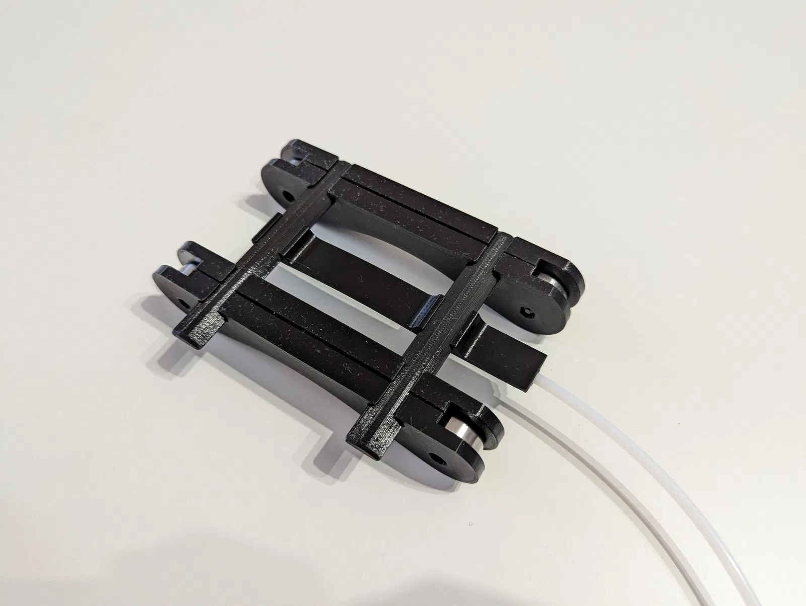 Chỉ cần gài lên các thanh rail, cắm ống PTFE vào là xong.