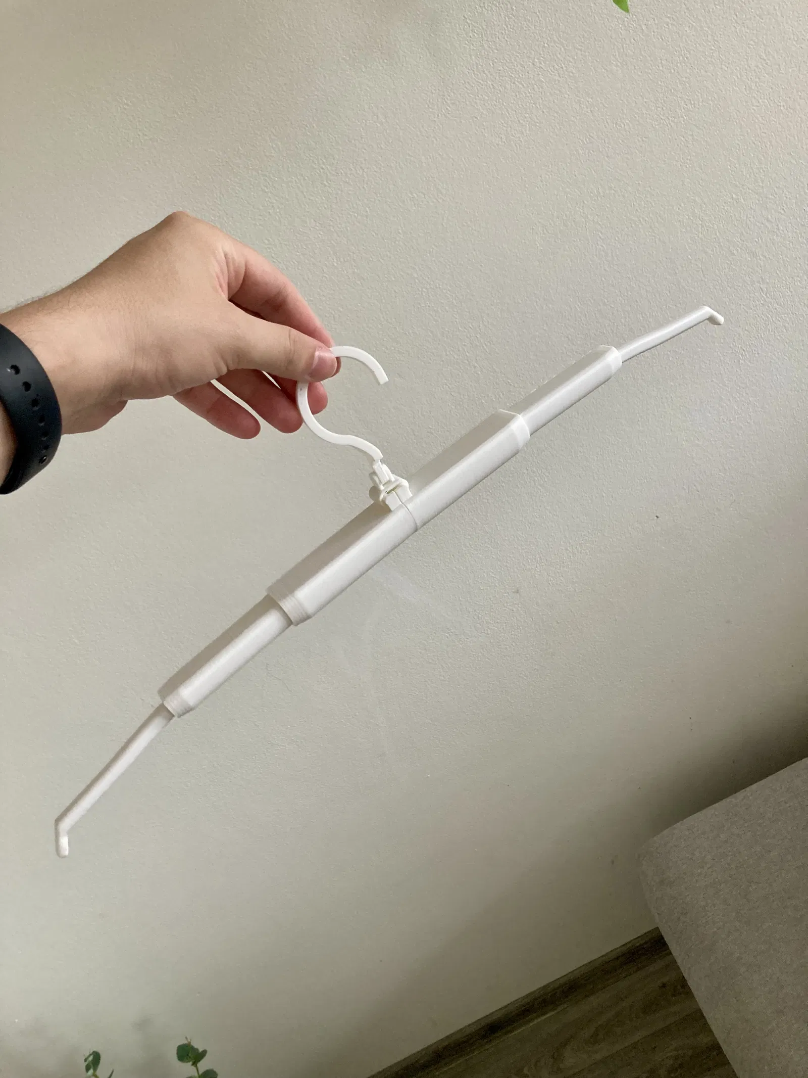Móc treo bỏ túi gấp gọn, siêu nhẹ, có thể chỉnh bề ngang theo kiểu telescopic. In print-in-place nguyên khối, không cần support hay lắp ráp. Gấp lại vừa lòng bàn tay, hợp đi du lịch/camping. Version 2 nhỏ và cong hơn.