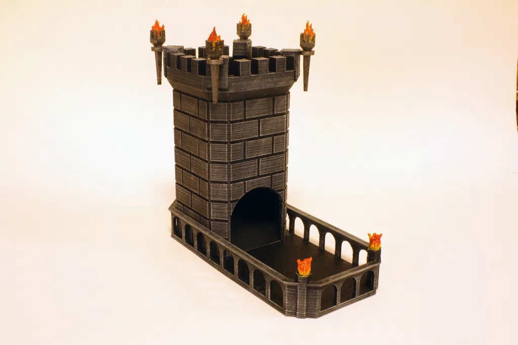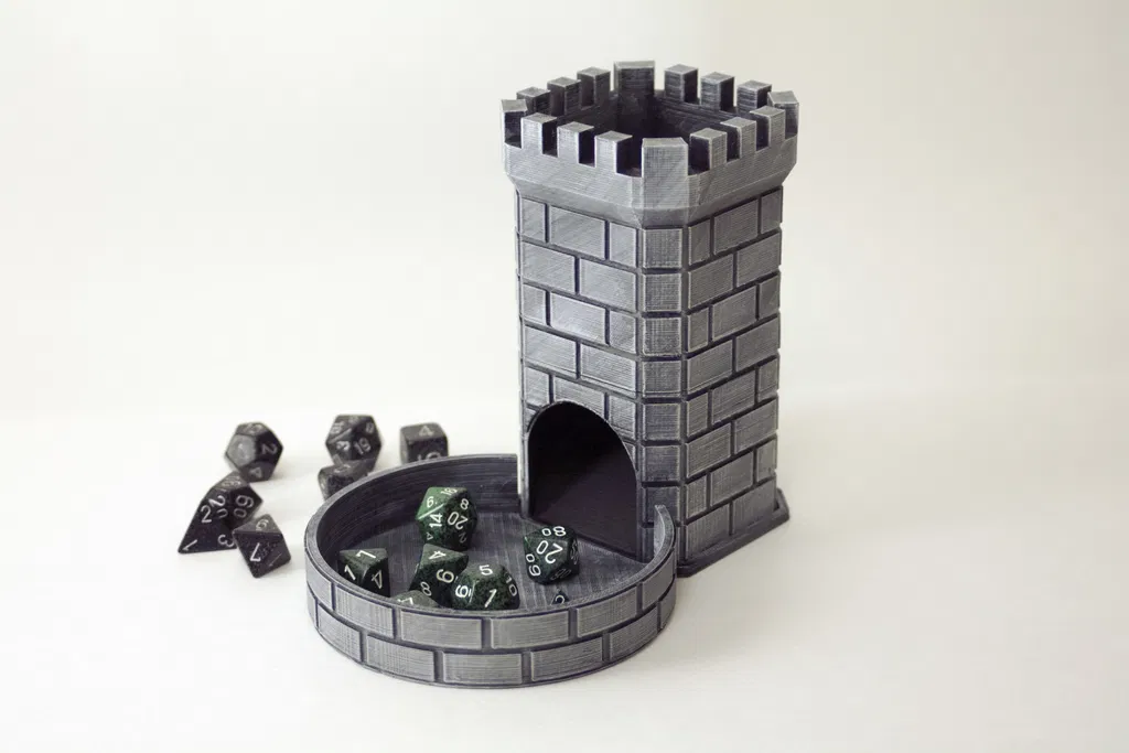 Tháp lăn xúc xắc cho game D&D, thiết kế đơn giản nhưng có khay (trays) và đồ trang trí thay đổi được để tuỳ biến theo ý thích. Dự án vẫn đang hoàn thiện và sẽ cập nhật thêm addons/decors theo thời gian.