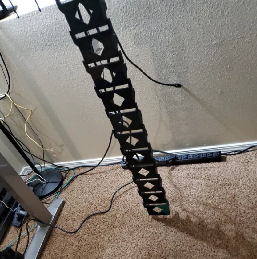 Mình dùng standing desk cũng được một thời gian rồi, và rất thích vì có thể đứng làm việc suốt cả ngày. Vấn đề là phải chừa khá nhiều slack (độ dư) cho dây cáp để bàn nâng hạ được, nhìn thì không gọn gàng chút nào. Vấn đề số 2 là mình làm developer nên trên bàn có tới 4 cái máy tính, thêm KVM và một đống thứ linh tinh khác. Mấy giải pháp cable management mình tìm trên Amazon thật sự không hợp, kiểu hơi “yếu” nếu phải gánh số lượng dây nhiều vậy. Thế nên mình làm cái này.