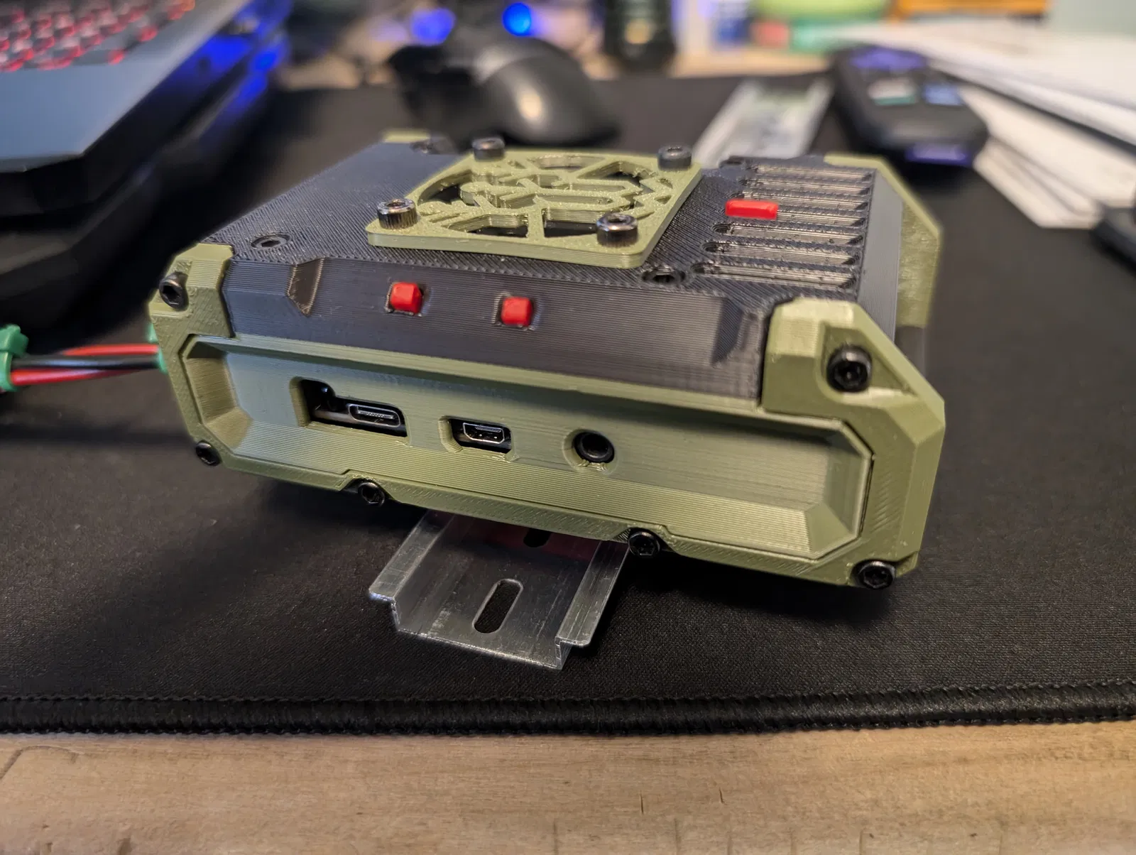 Vỏ Raspberry Pi 4 được remix để dùng với Bigtreetech Pi2 mới. Mình cũng làm thêm một cái kẹp DIN rail low profile, dùng vài sợi dây thun để giữ cho chắc.