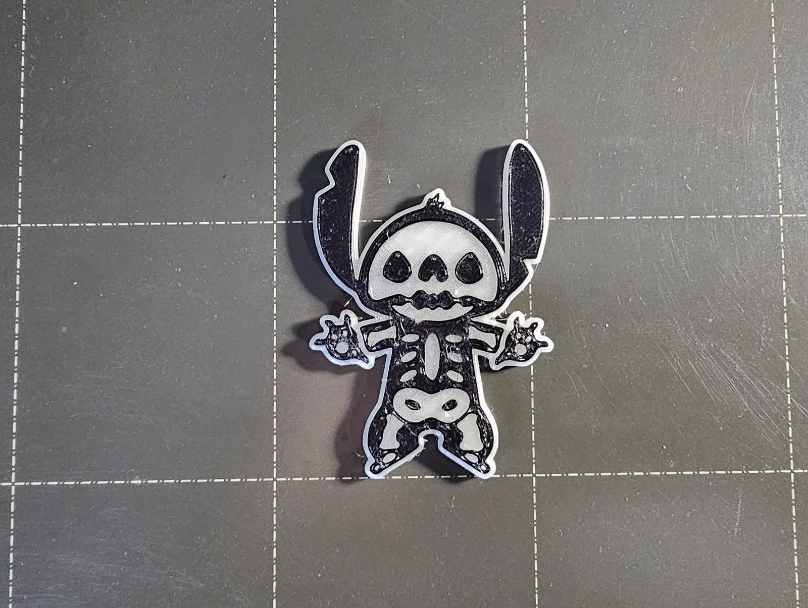 Khám phá mô hình 3D "Stitch Skeleton Glow-in-the-Dark" - phiên bản Stitch bộ xương ma quái với khả năng phát sáng trong bóng tối. Mô hình độc đáo này là điểm nhấn hoàn hảo cho mùa Halloween, mang đến không khí bí ẩn và thu hút. Kích thước nhỏ gọn (47 x 66 x 3.4 mm) dễ dàng trang trí. File .3mf đi kèm cho phép in 2 màu, tạo đường viền đen sắc nét. Sử dụng filament phát sáng chất lượng cao và sạc "năng lượng" dưới ánh sáng để có hiệu ứng tốt nhất. Một món quà độc đáo cho fan Stitch và dịp Halloween.