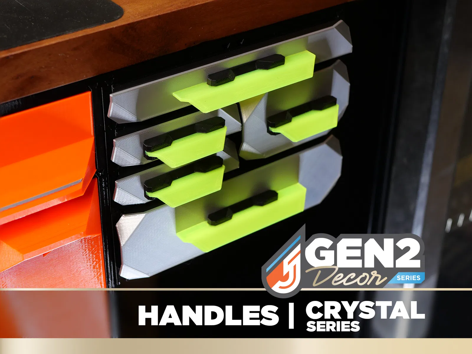 Crystal Series là một phần của dòng GEN2 Decor. Các tay nắm (handles) và núm (knobs) có thể mix & match với nhiều faceplate khác nhau để tạo ra một giải pháp lưu trữ cá nhân hoá, độc đáo và hoàn toàn có thể in 3D.