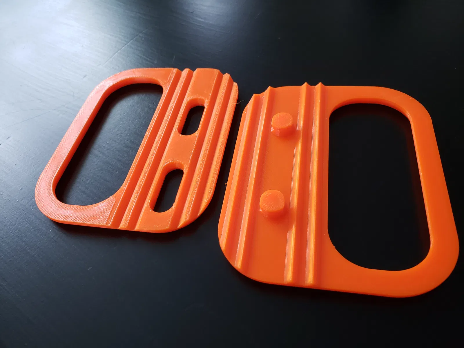 Gồm 2 phần để ghép thành 1 cái tay cầm. Bạn cần in mỗi file 2 lần để làm được 2 tay cầm. Rất chắc! Thiết kế để kẹp và giữ vải nhằm tạo tay cầm, đặc biệt cho vỏ gối dùng khi đi trick-or-treat. Dùng rất hiệu quả. Mình in bằng PETG nhưng PLA có thể cũng dùng được.