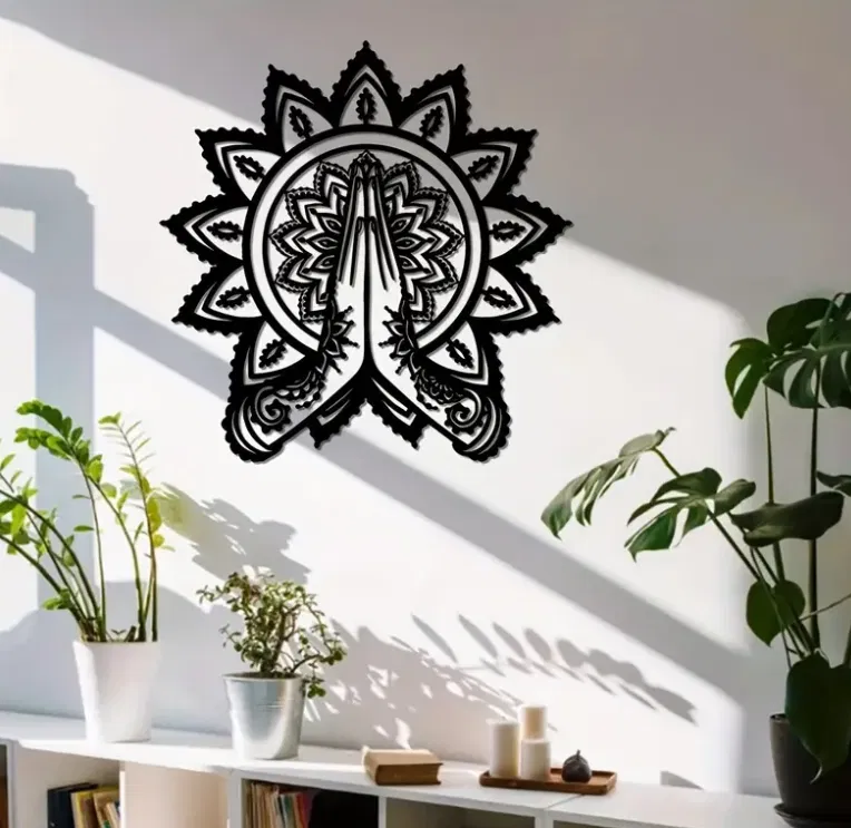 Mang đến sự tĩnh lặng và hài hòa vào không gian sống của bạn với tuyệt phẩm nghệ thuật treo tường hình Mandala hoa sen kết hợp thủ ấn cầu nguyện. Sản phẩm này không chỉ là một vật trang trí độc đáo, mà còn là biểu tượng của sự bình an, tập trung và kết nối nội tâm, rất phù hợp cho những ai yêu thích Yoga, thiền định hoặc đơn giản là muốn tạo dựng một không gian thư giãn, tràn đầy năng lượng tích cực.