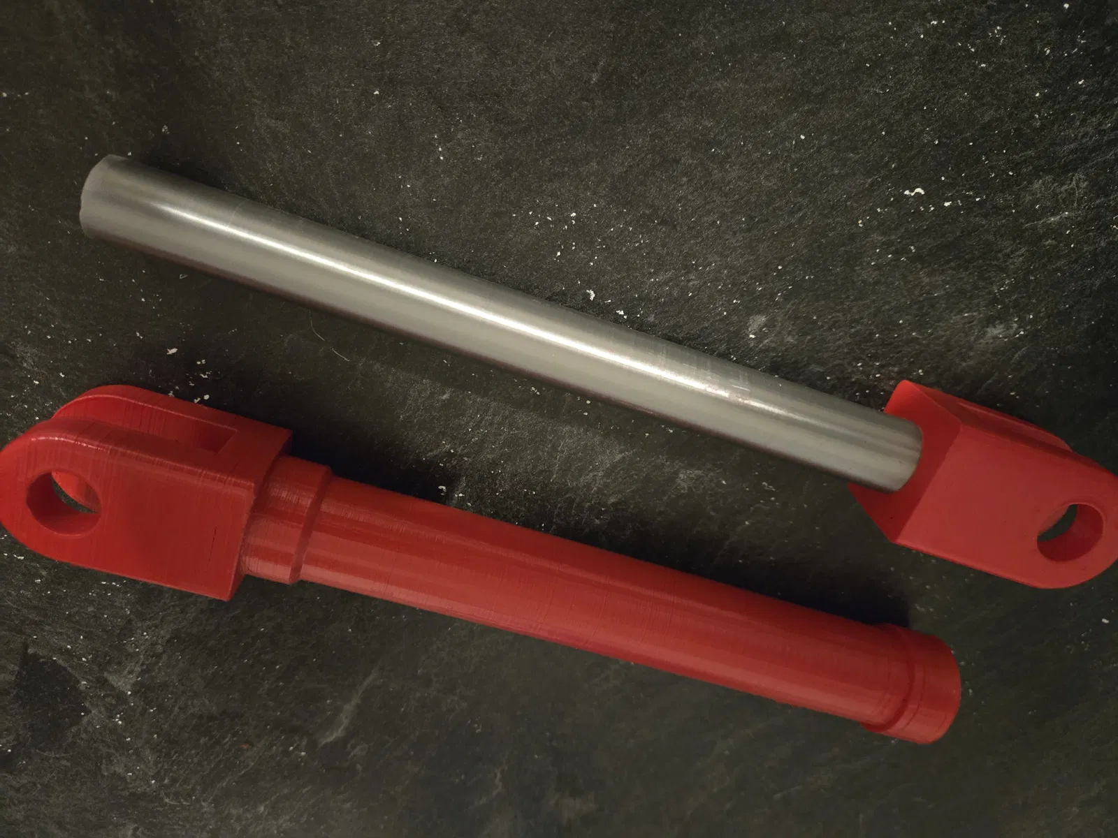 Mẫu mô hình một hydraulic cylinder mình dùng cho trang phục Halloween. Dán lại với nhau gồm 1 thân và 1 đầu lớn. Mình dùng công cụ cylinder cơ bản trong slicer để tạo một trụ kích thước 19.5 x 200 mm, rồi dán vào đầu nhỏ.