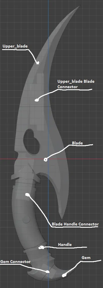 Món đạo cụ này được thiết kế để tối ưu cho việc in 3D, cho phép bạn tùy chỉnh kích thước và màu sắc theo ý thích. Phần tay cầm được tạo hình vừa vặn, mang lại cảm giác cầm nắm chắc chắn và thoải mái. Lưỡi dao có độ cong ấn tượng, kết hợp với các chi tiết trang trí tinh xảo, tạo nên một vũ khí giả tưởng đầy mê hoặc. Điểm nhấn đặc biệt là phần "gem connector" ở chuôi dao, nơi bạn có thể gắn thêm các viên đá giả hoặc chi tiết trang trí khác để tăng thêm phần độc đáo.