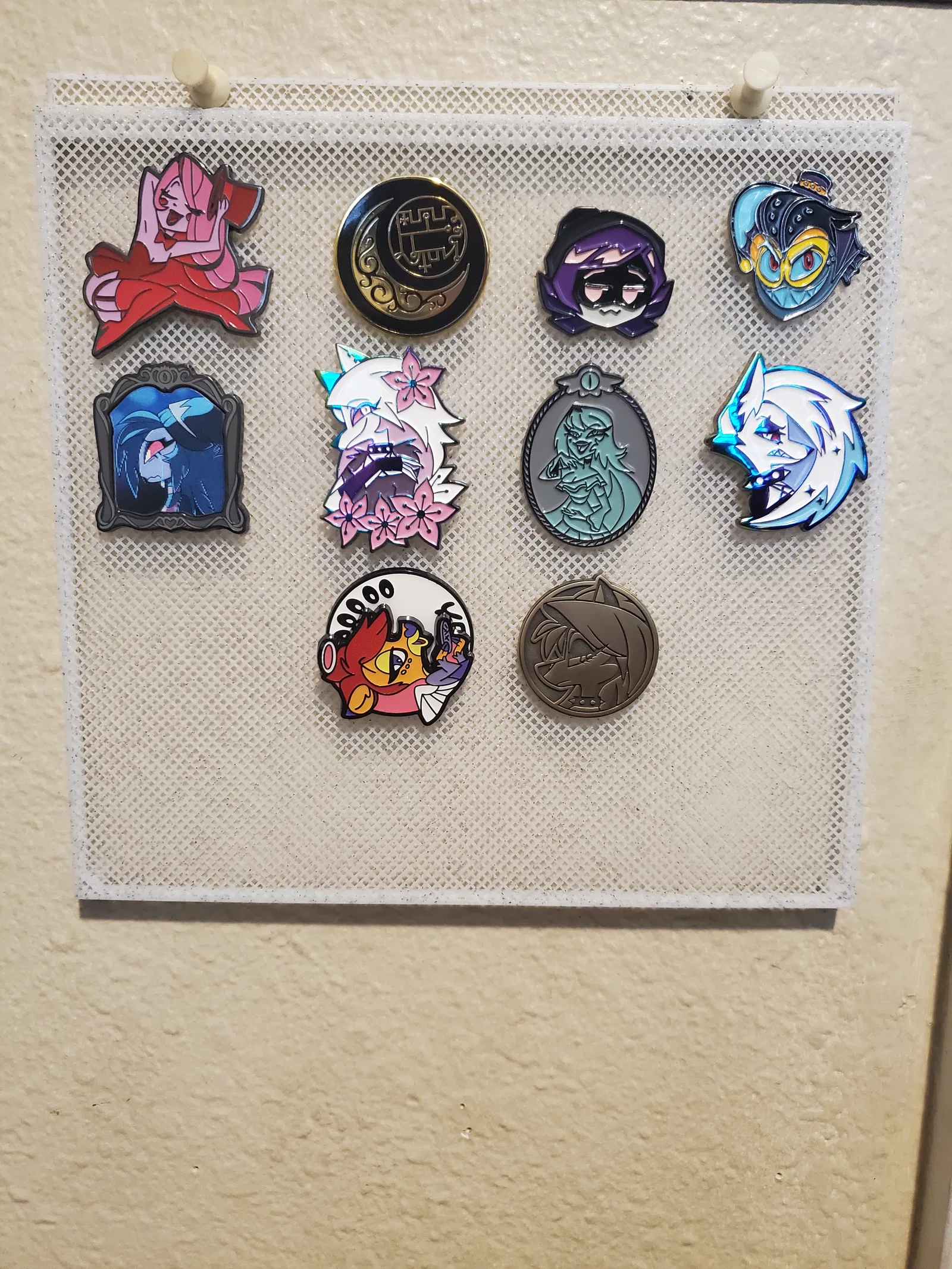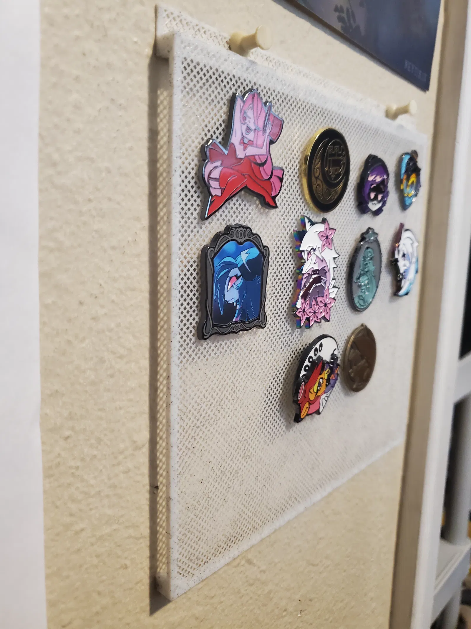 Mình làm cái này để treo/lưu trữ mấy cái enamel pin đang để lung tung trên tường. Mẫu này cần supports để in được; loại nào cũng được, nhưng mình đã dùng grid.