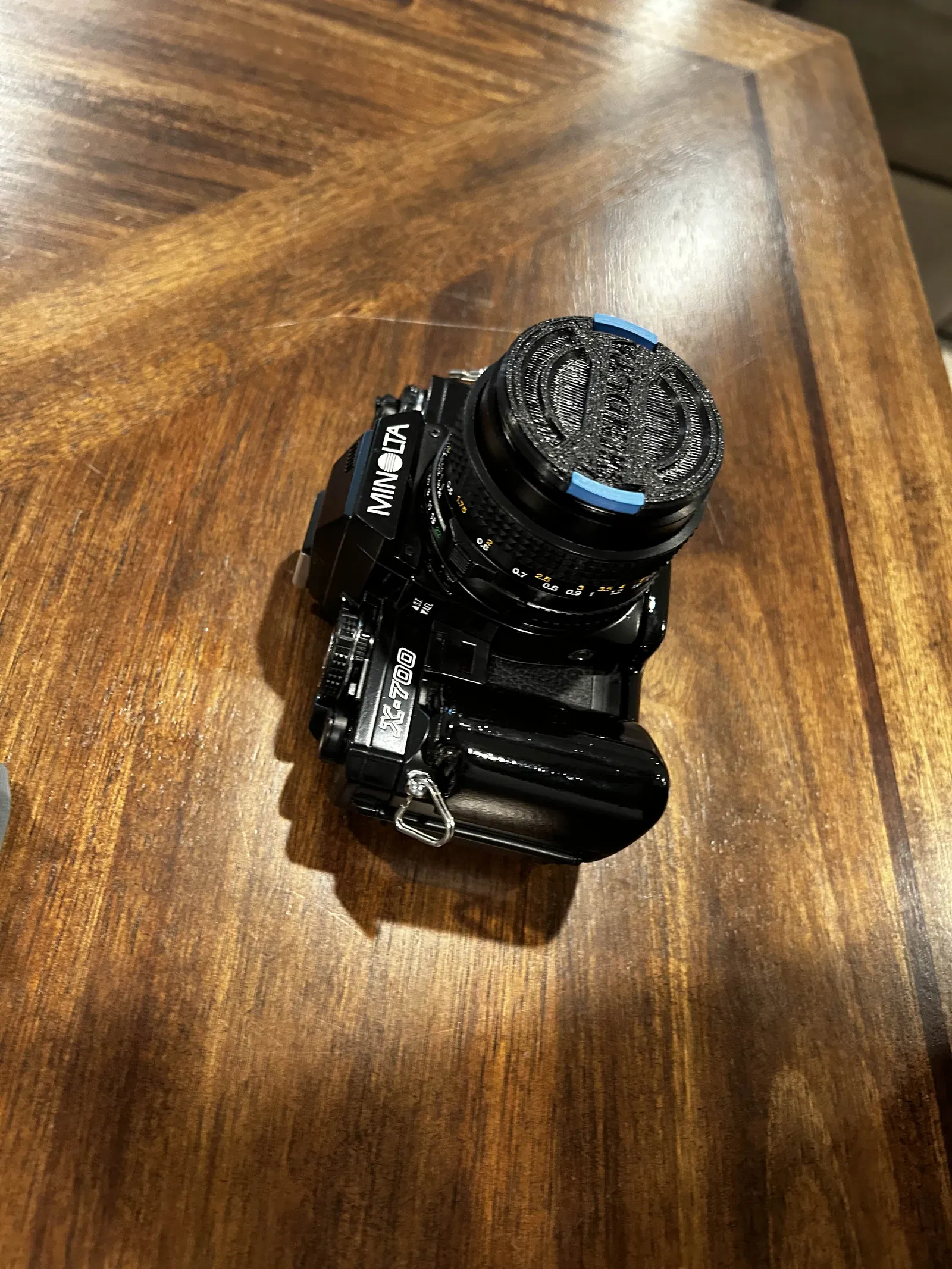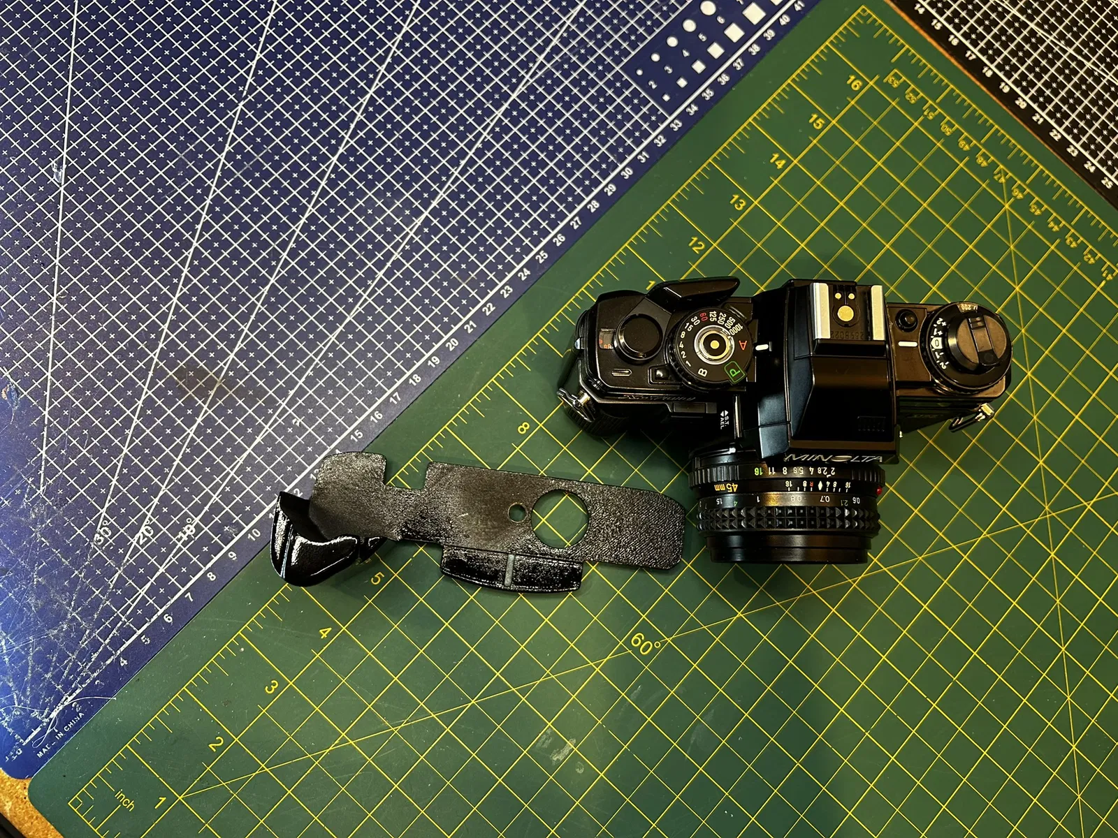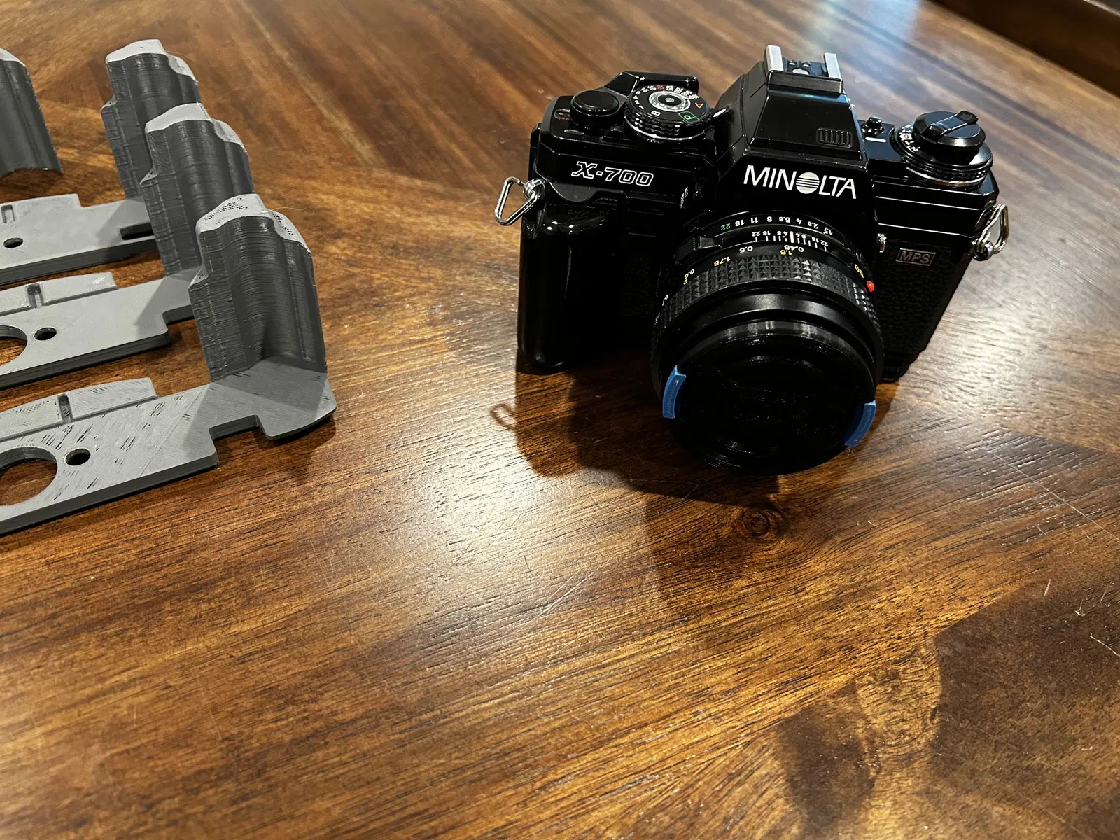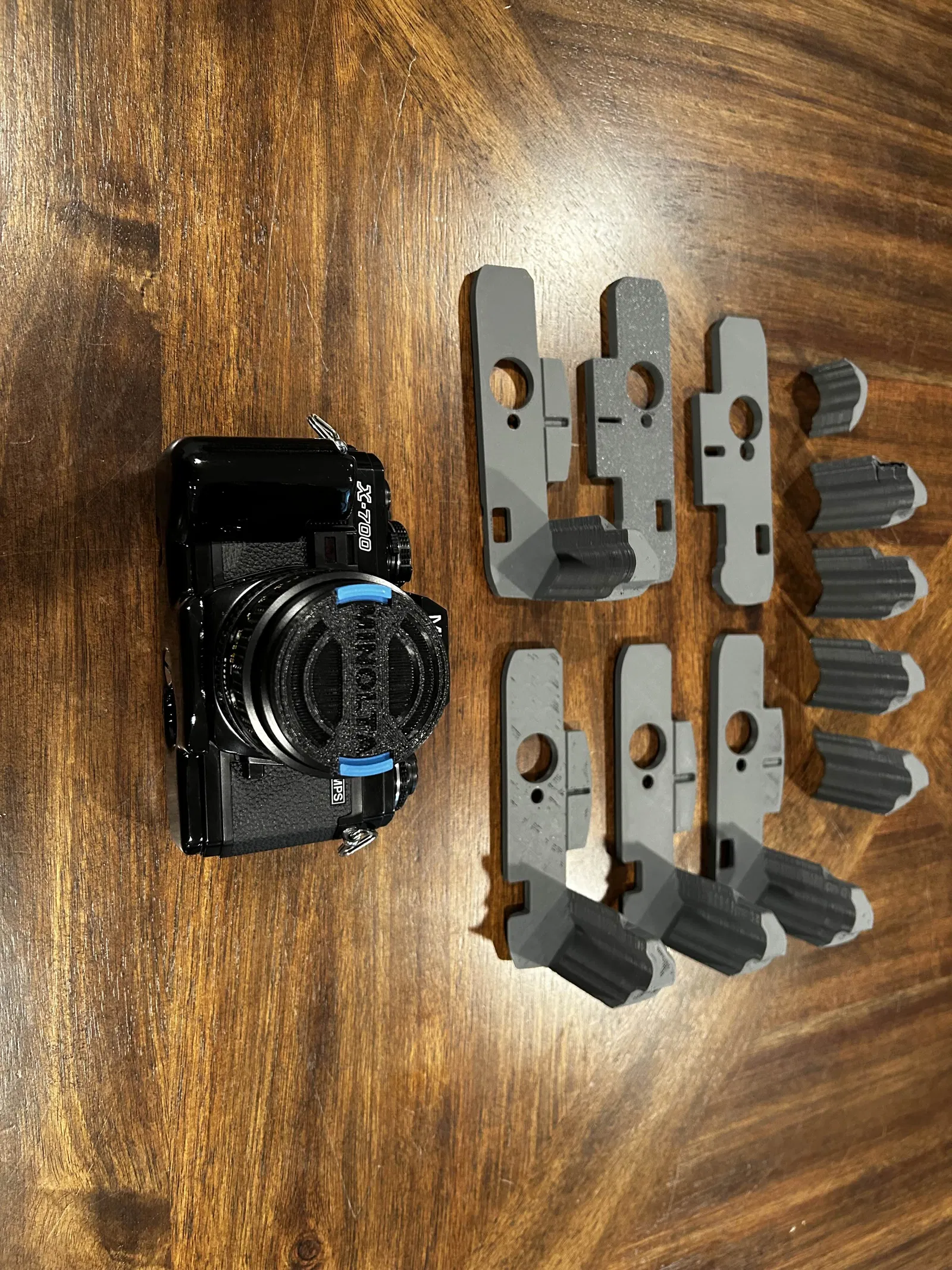 Grip dành cho Minolta X-700, bắt trực tiếp vào ren tripod bằng ốc 1/4-20 USC đầu dẹt rãnh dài 1/2 inch. Bản trong ảnh đã được chà nhám, sơn và phủ clear coat 2K cho bề mặt đẹp, bền.