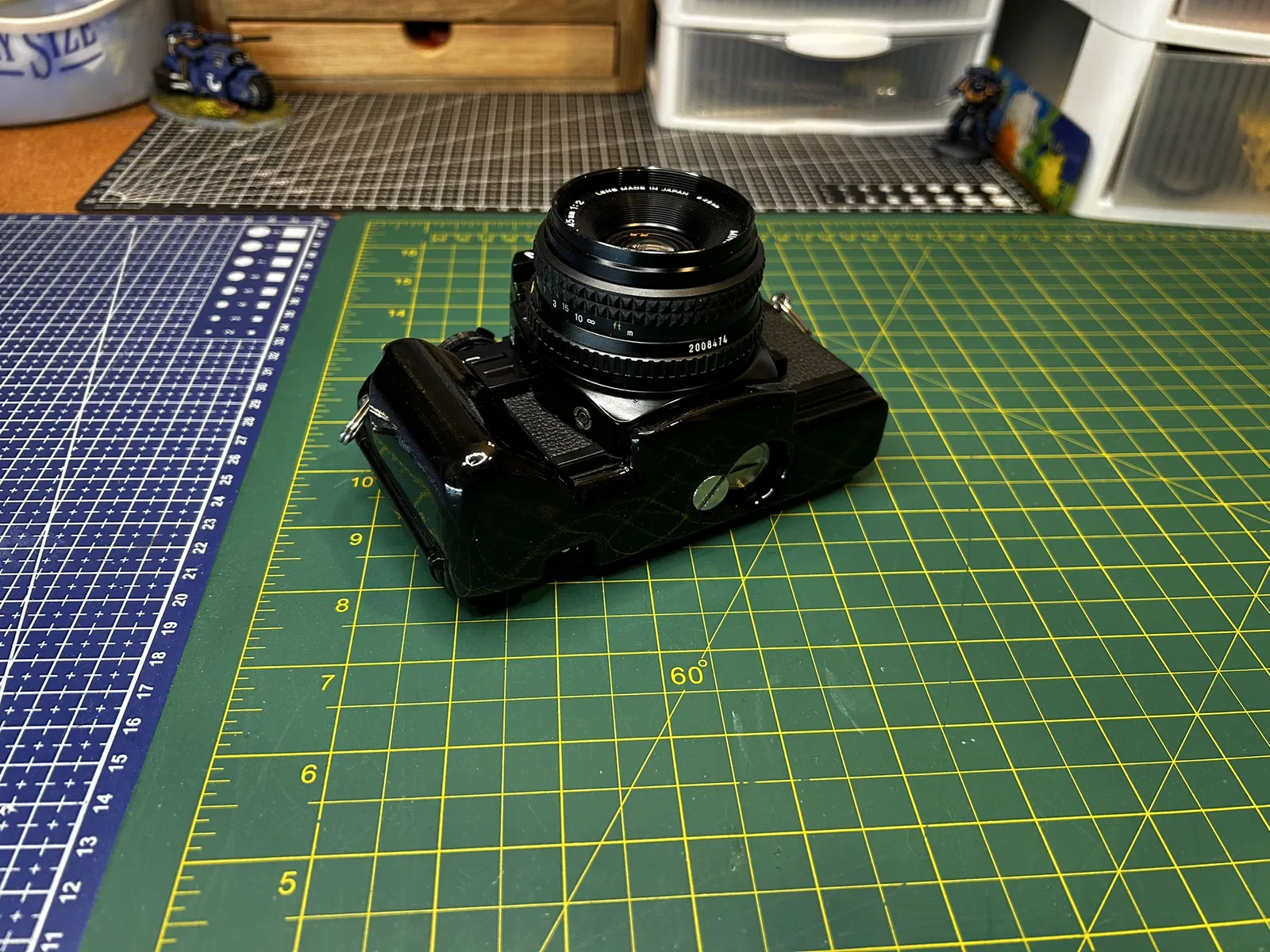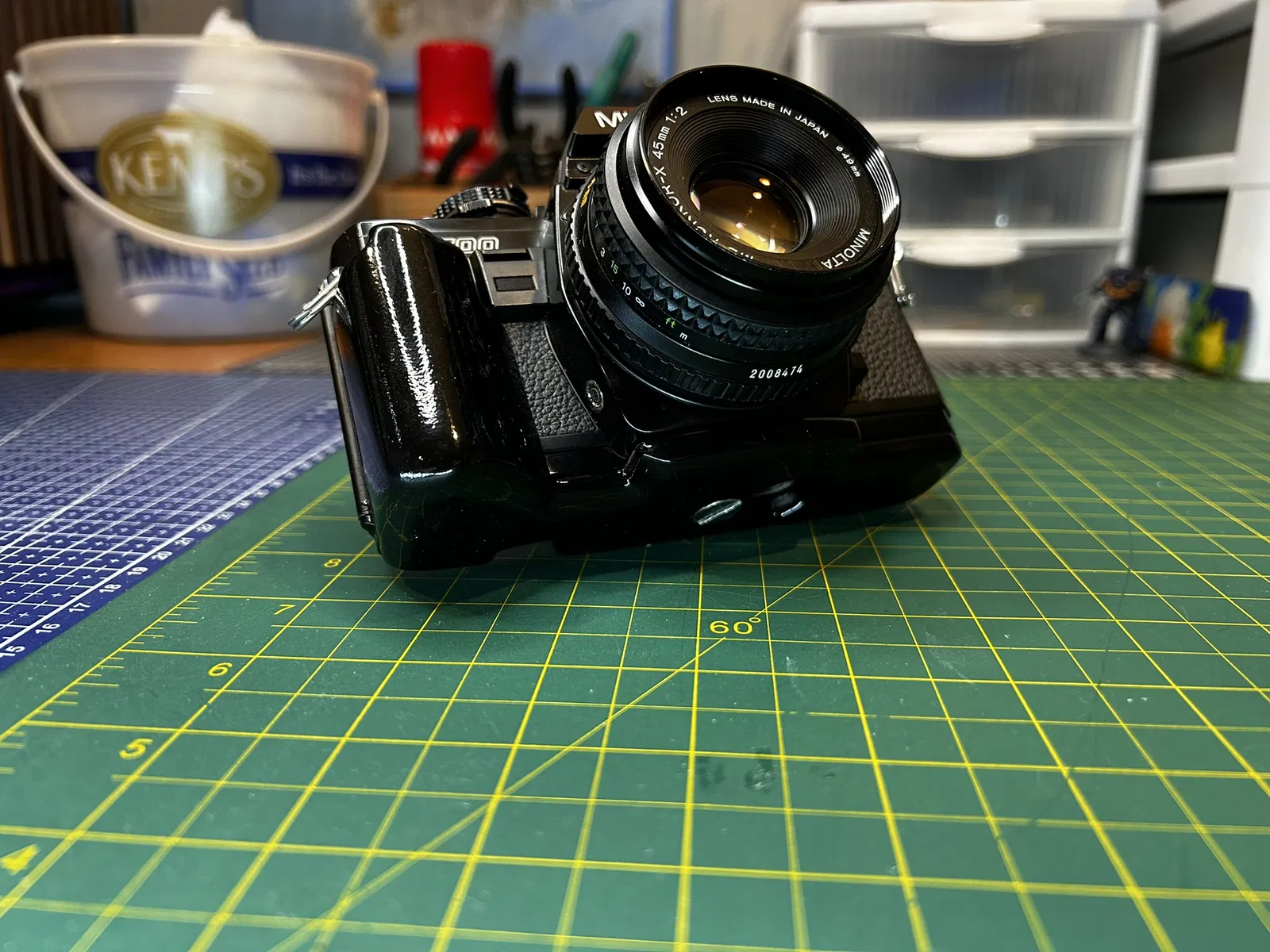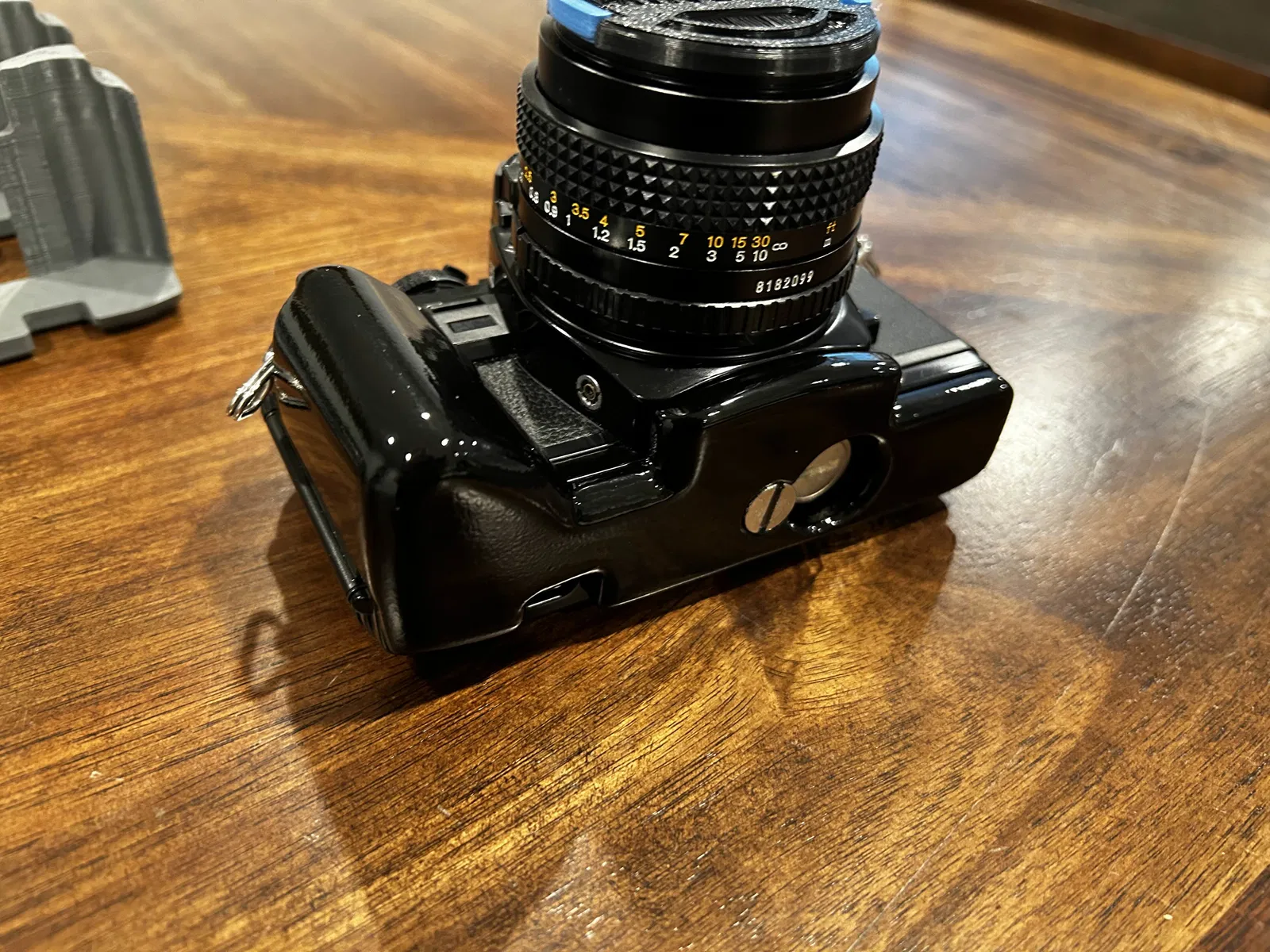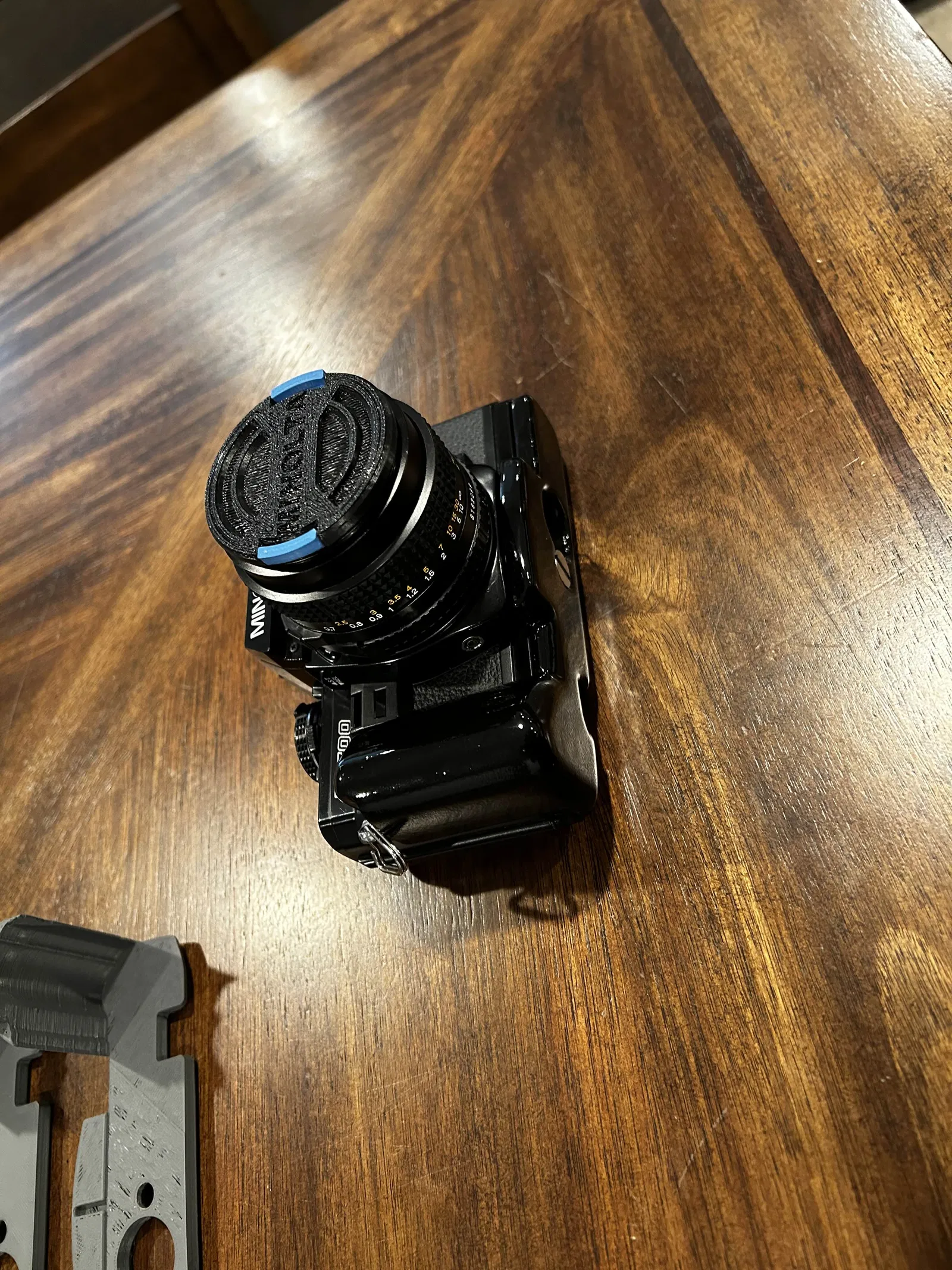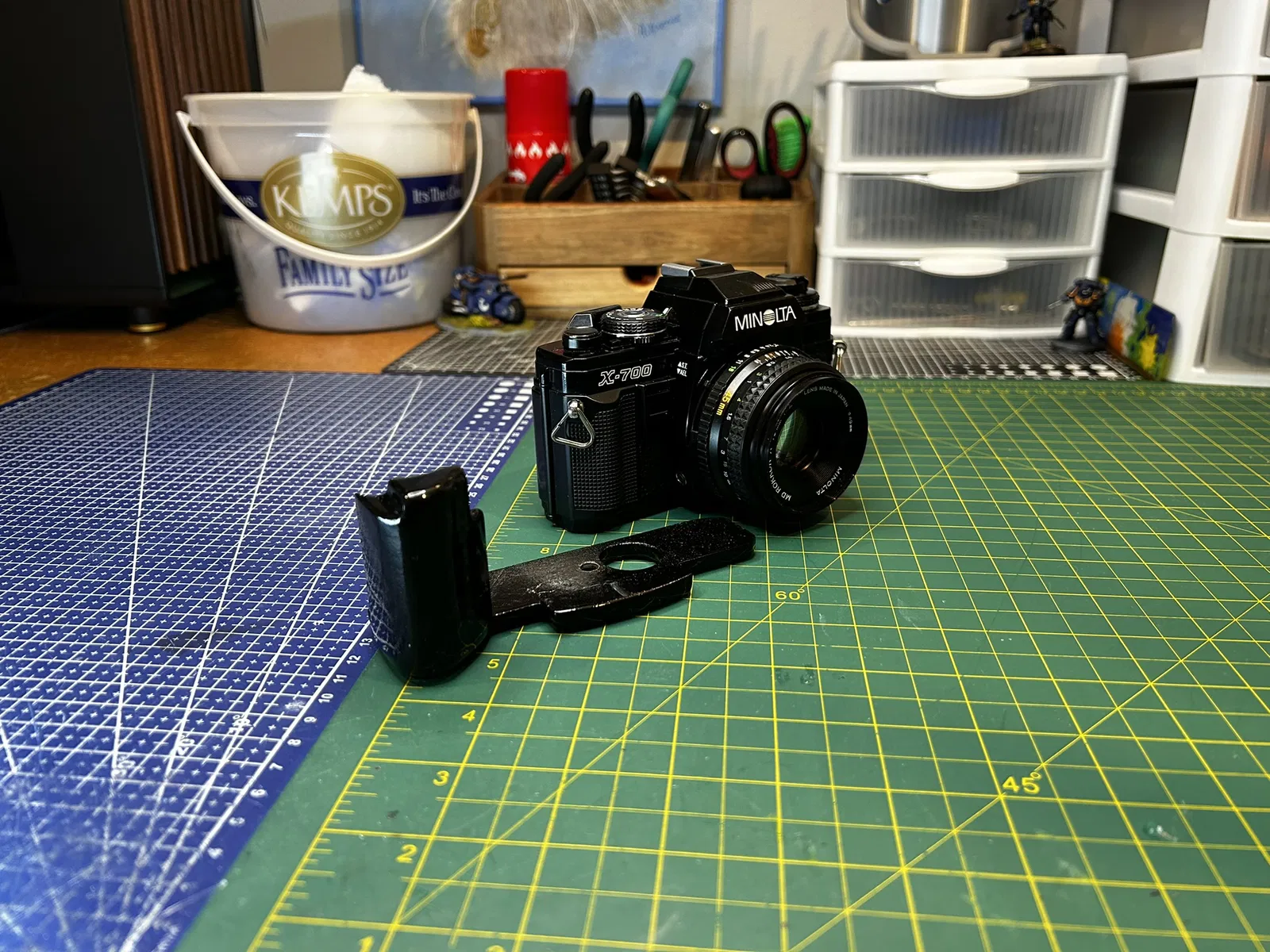 Grip dành cho Minolta X-700, bắt trực tiếp vào ren tripod bằng ốc 1/4-20 USC đầu dẹt rãnh dài 1/2 inch. Bản trong ảnh đã được chà nhám, sơn và phủ clear coat 2K cho bề mặt đẹp, bền.