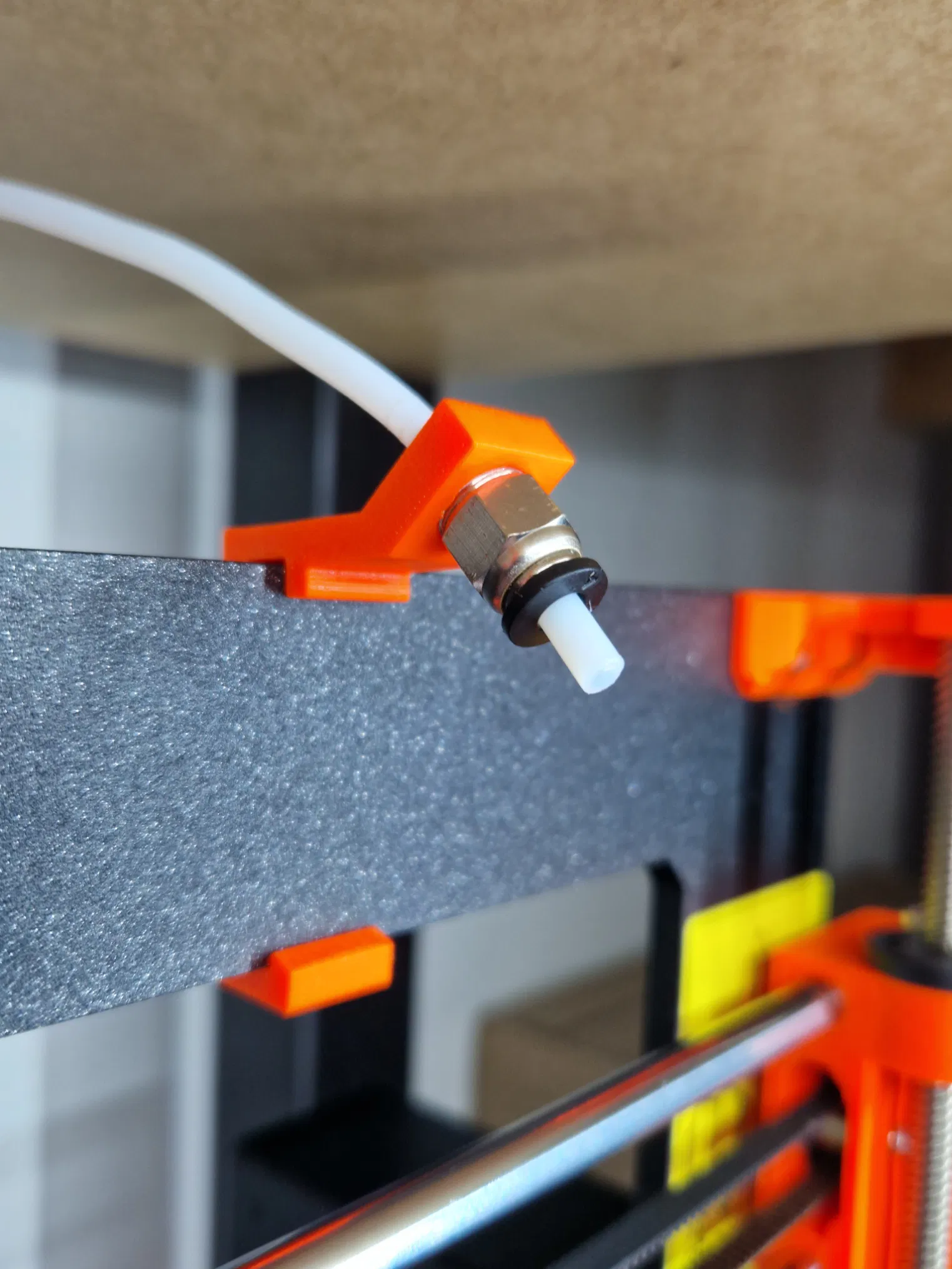 Đồ dẫn filament dạng snap-on ngắn gọn cho ống PTFE, dùng đầu nối PC4 ren M10. Thiết kế dành cho khung Prusa MK3/S/S+, lắp chắc tay, giữ ống ổn định và không dễ rơi tuột.