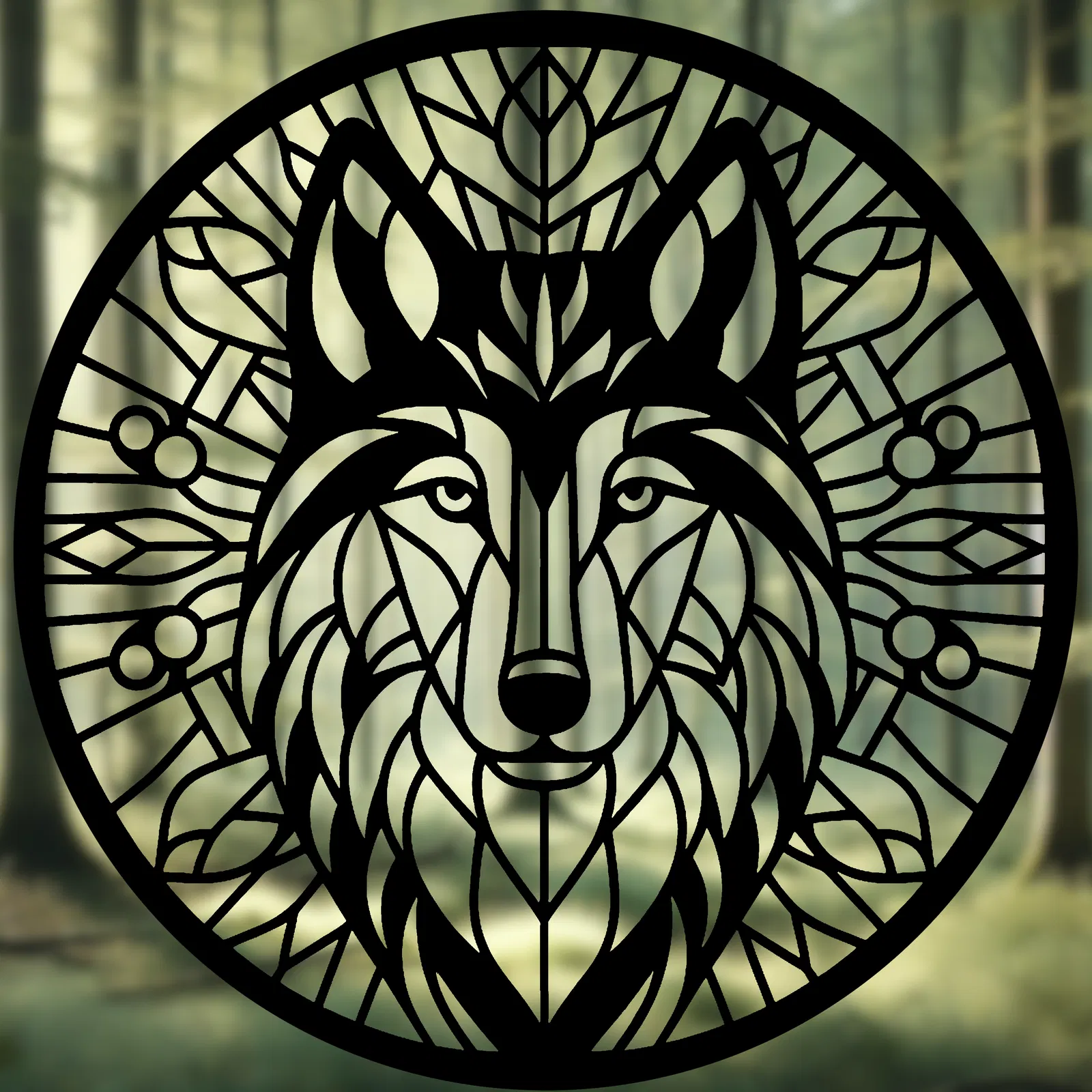 Nghệ thuật Mandala Sói Geometric – tranh treo tường phong cách Stained Glass