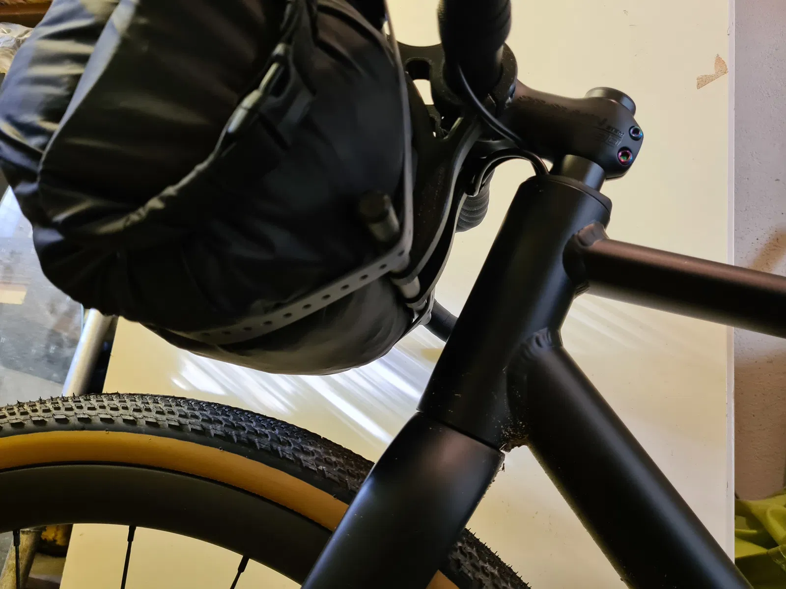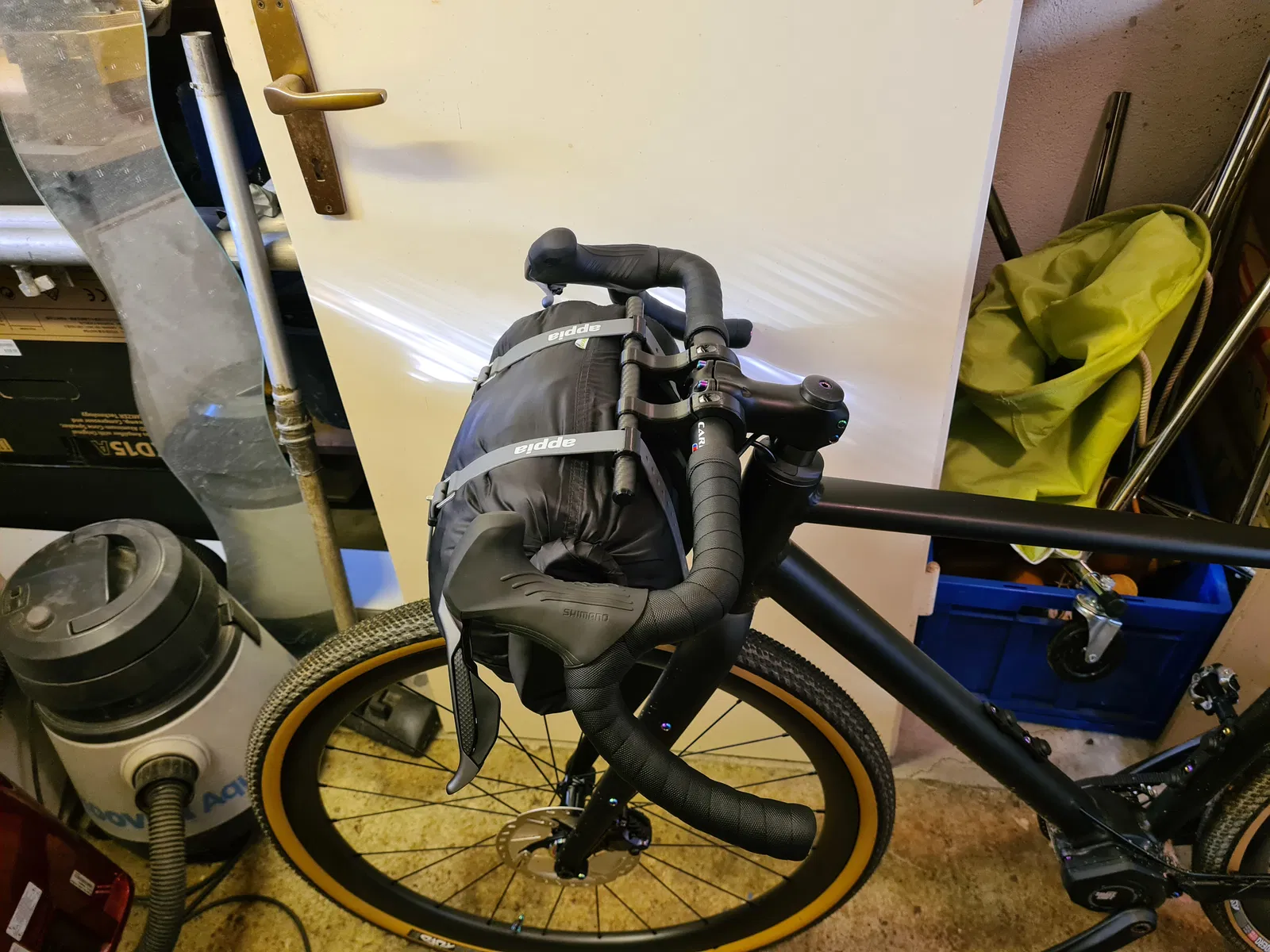 Bộ harness gắn túi ghi-đông (handlebar bag) cực kỳ linh hoạt cho bikepacking.