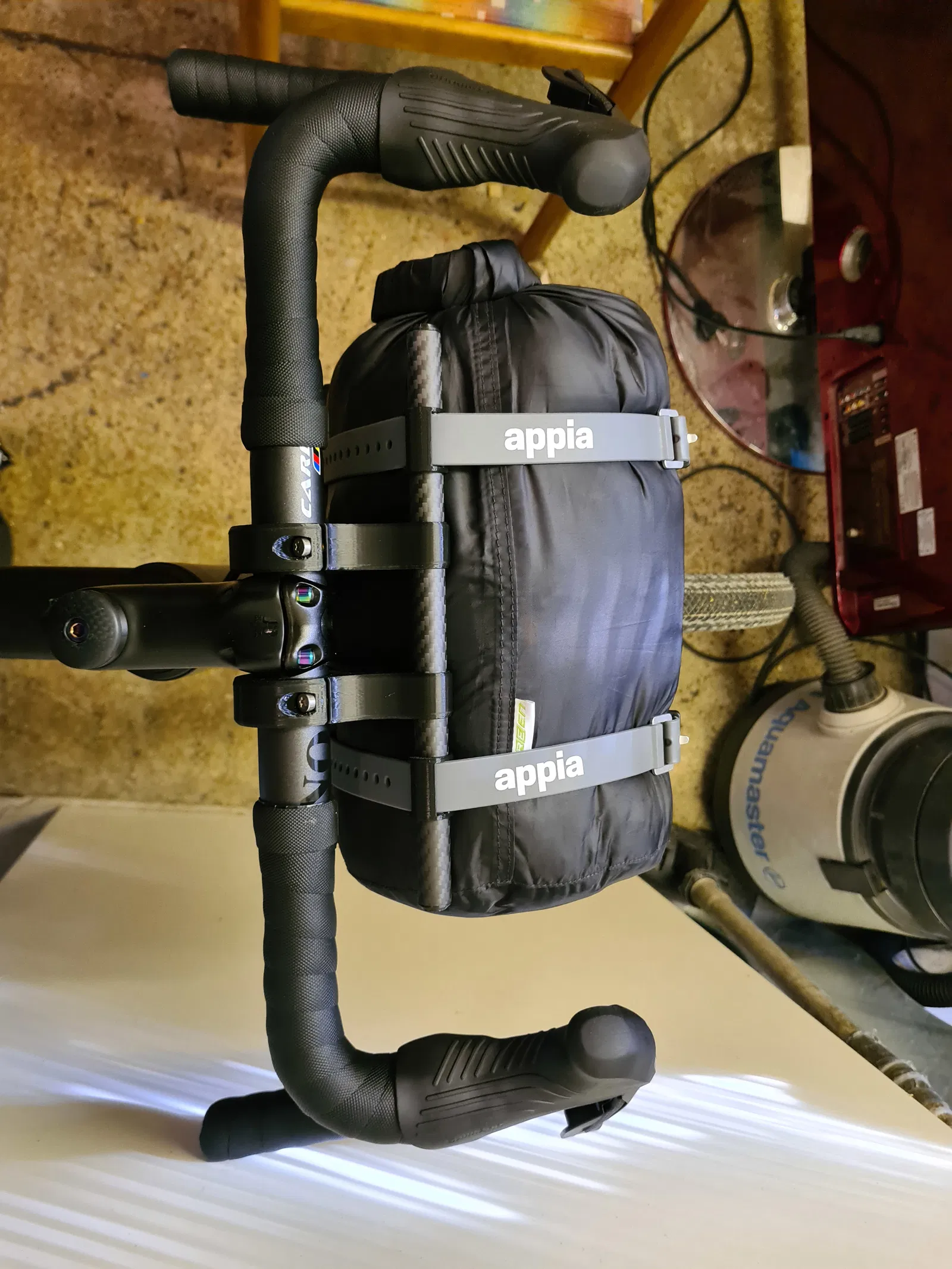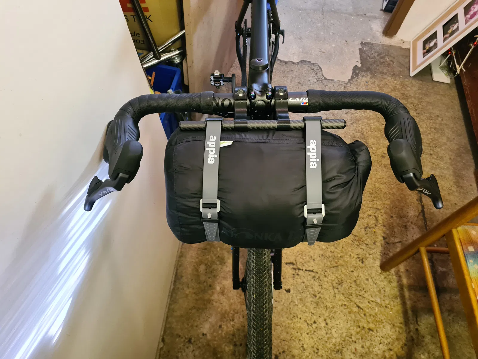 Khi dùng harness với một handlebar bag thông dụng thì ống carbon là tùy chọn, dây đai (straps) cũng vậy.