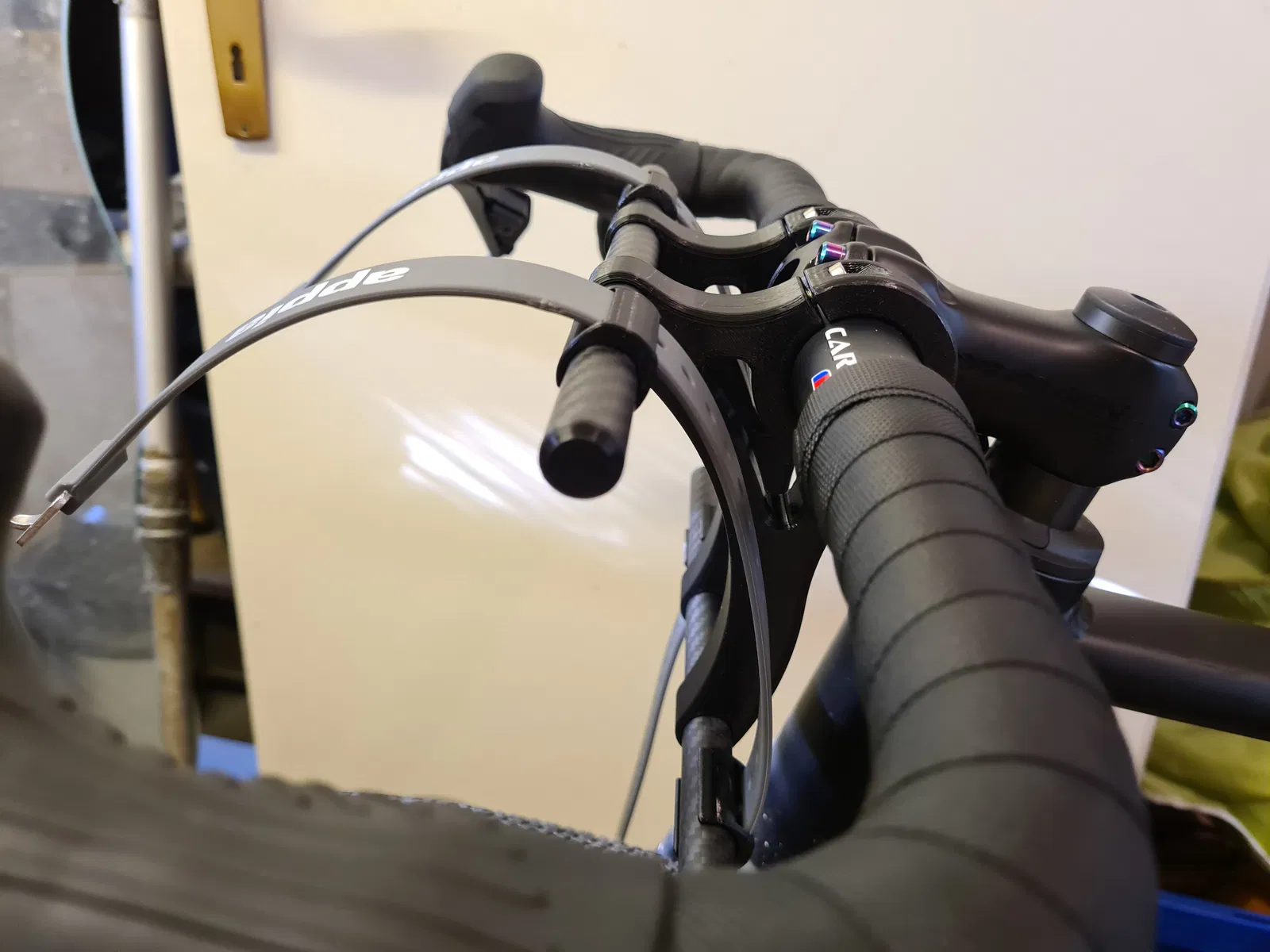 Bộ support chắc chắn cho handlebar bag và dry bag, gắn cứng lên ghi-đông để giảm lắc và tránh cạ sườn. Model dạng parametric, dễ chỉnh theo cỡ túi, cỡ ghi-đông và góc lắp. STL mẫu cho 31.8mm & túi 180mm.