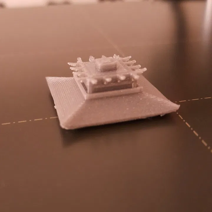 In màu vẫn làm được với setup thường (không cần MMU) nếu bạn in tầng 1 đến 4 cùng lúc và dùng cách pause-and-change filament: đổi từ đen sang đỏ giữa chừng. Phần chóp trên cùng cũng làm tương tự: đổi từ đen sang vàng gold.