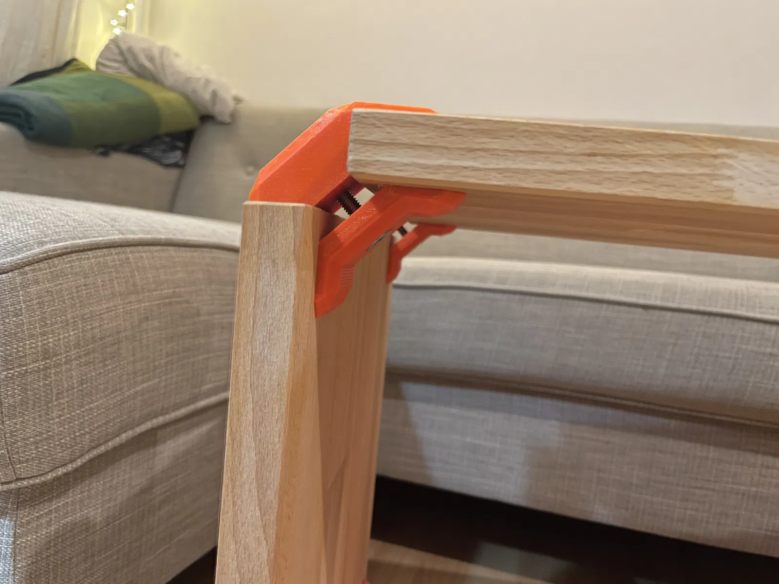 Đây là một cái clamp giúp bạn ghép 2 tấm ván vuông góc (90°) với nhau. Thật ra, hầu hết nhu cầu nội thất cơ bản của mình đều có thể giải quyết chỉ với kiểu ghép này.