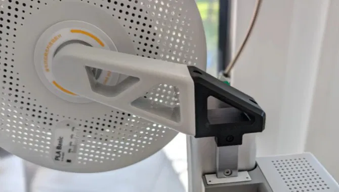 Thay vì đặt cuộn dây PLA hay vật liệu in 3D ở một nơi khác, giờ đây bạn có thể treo nó ngay trên máy in. Điều này không chỉ tiết kiệm diện tích mà còn giúp dây filament di chuyển mượt mà hơn, tránh bị rối hay gấp khúc trong quá trình in. Thiết kế thông minh của giá đỡ còn giúp dây dẫn đi qua một cách hợp lý, hạn chế tối đa tình trạng kẹt dây, đảm bảo bản in của bạn diễn ra liền mạch và thành công.