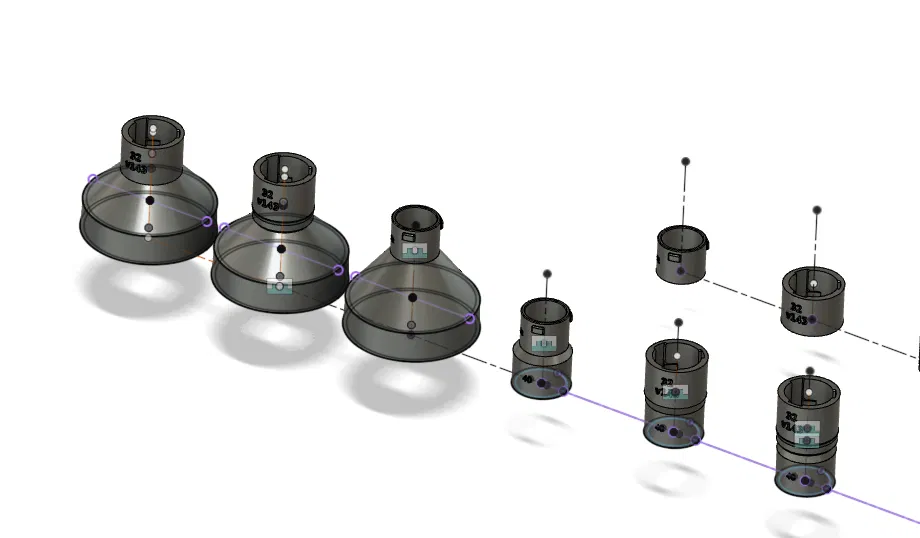 Mình sẽ up một số file STL ở đây, nhưng cơ bản là bạn có thể generate hết từ project Fusion. Nên nếu bạn không thấy đúng loại adapter/kích thước mình cần, cứ tải Fusion360 (miễn phí cho mục đích cá nhân) rồi chỉnh (tweak) theo nhu cầu của bạn).