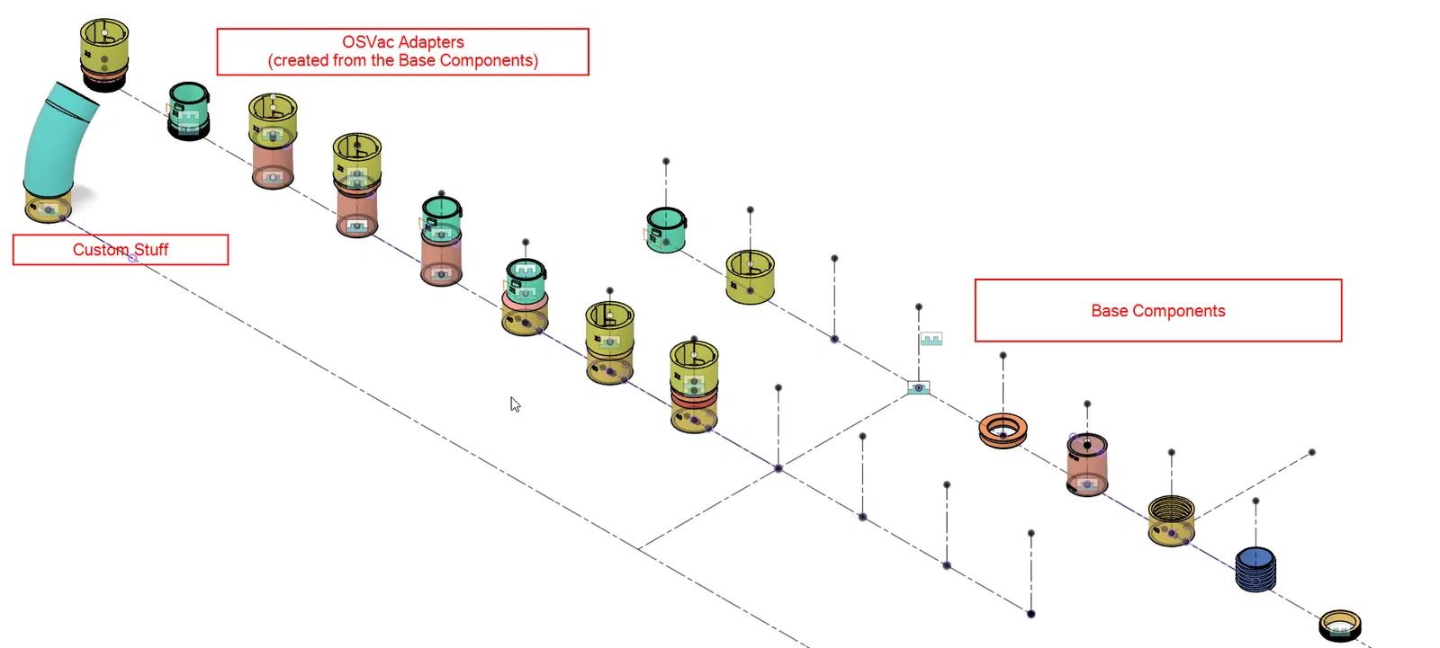 VaCADapt là một bản fork của dự án adapter máy hút bụi OSVac. Dự án dựa trên model Fusion360 với rất nhiều tham số (parameters) để bạn chỉnh cho vừa với ống (hose) và nhu cầu adapter của mình.