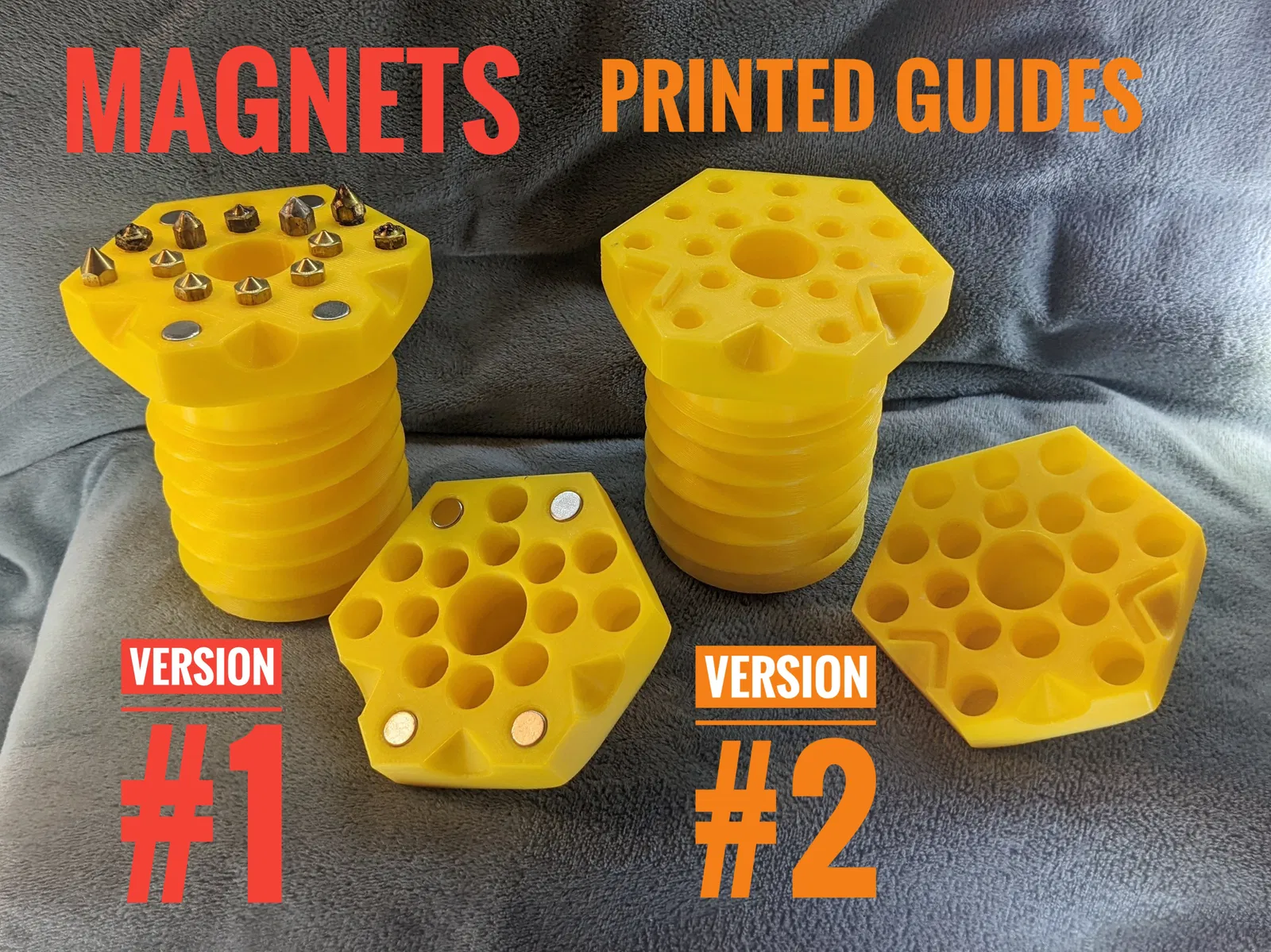 Nozzle có Magnets - Nam châm 8x3mm được dán vào mỗi nửa để khớp chắc và giữ chặt hơn. Tổng cộng cần 8 viên nam châm (4 viên mỗi bên). Nếu bạn có sẵn loại nam châm này, phiên bản này là lựa chọn tốt hơn.