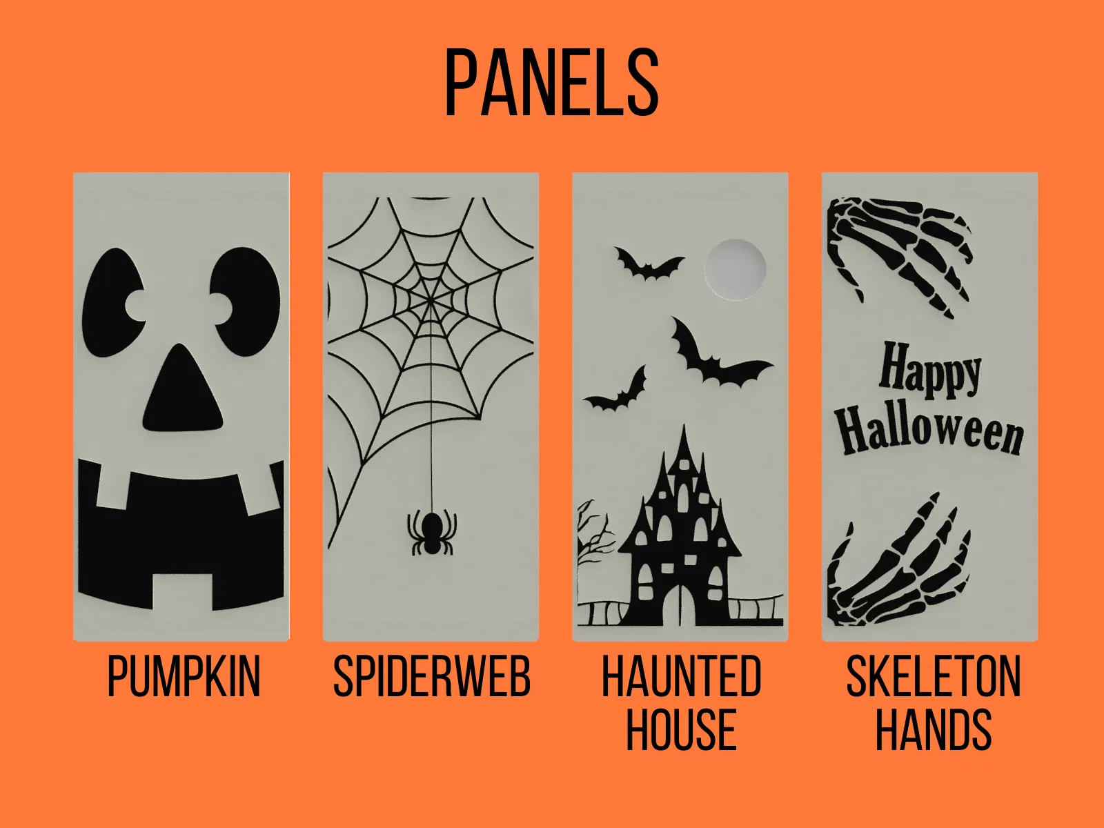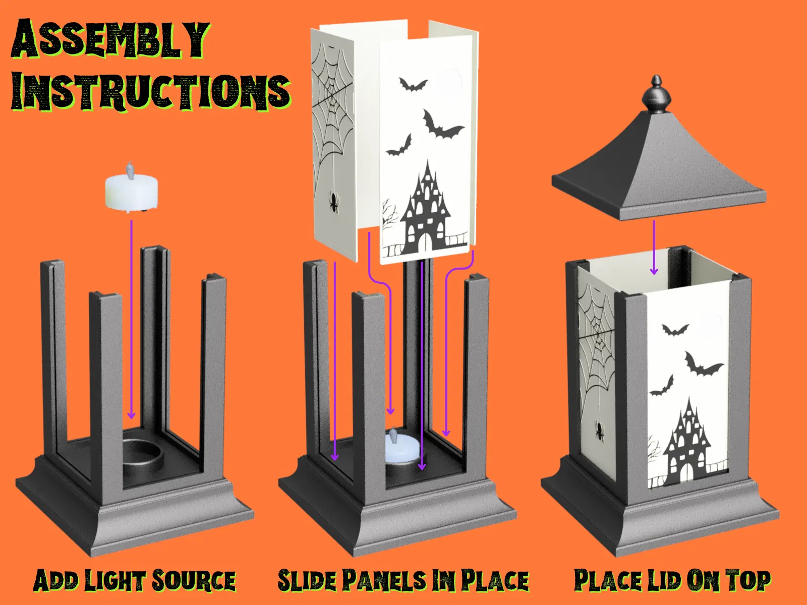 Đèn lồng Halloween này có thể thắp bằng tealight hoặc Bambu Lab light kit. Mẫu gồm 4 tấm panel, đồng thời có kèm một panel trống (STL & STEP) để bạn tự thiết kế theo ý mình!