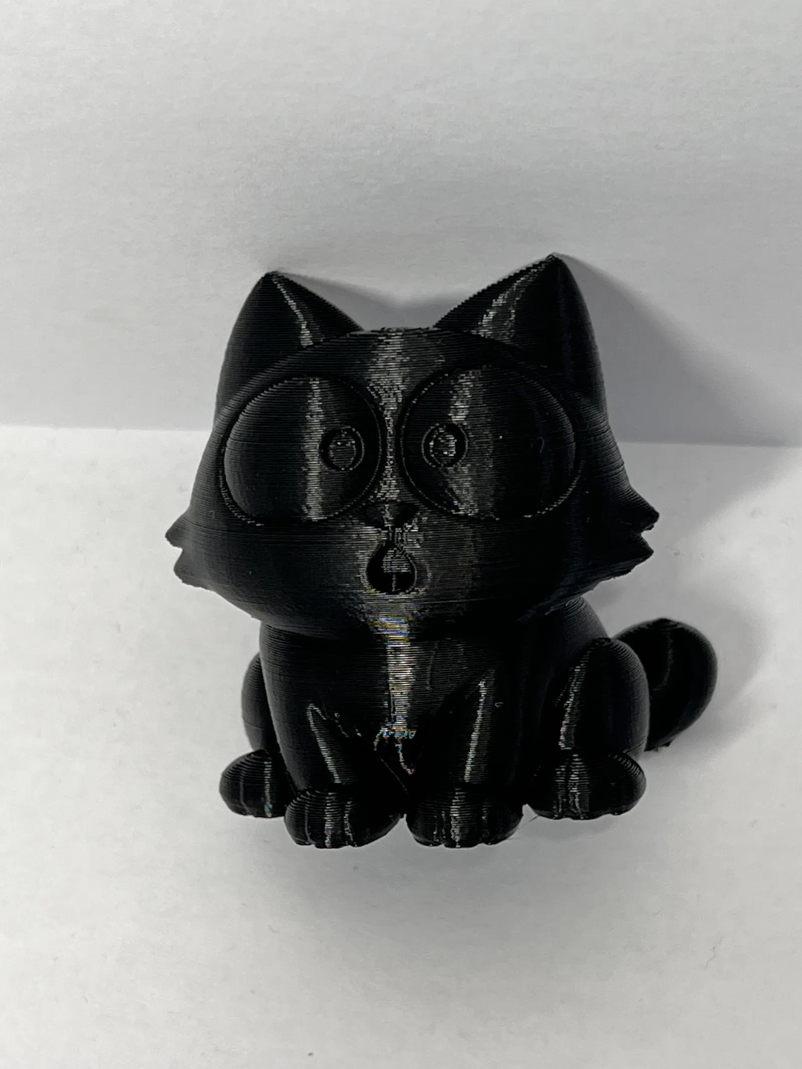 Mẫu tượng 3D Simon’s Cat được AI tạo ra, dễ in và phù hợp để trưng bày. Tác giả in trên máy hơi cũ, thường in kích thước nhỏ; ảnh chụp macro chỉ để minh họa và xác nhận mẫu in ổn.