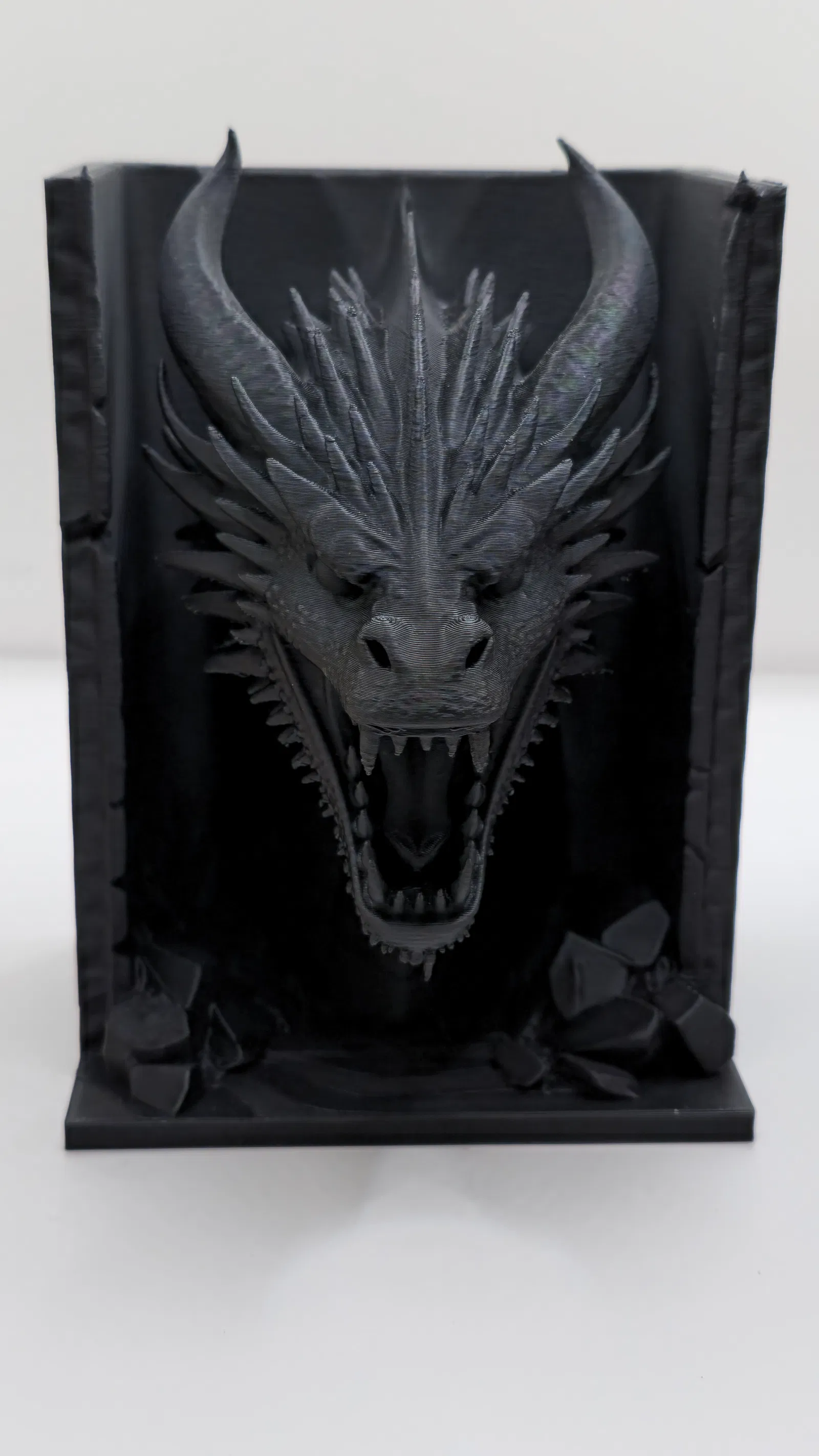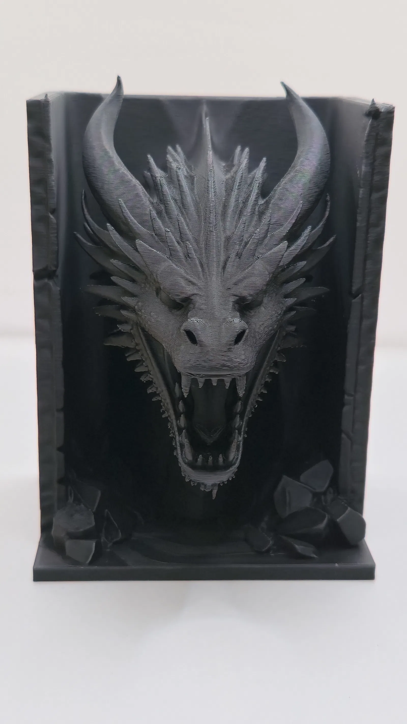 Mẫu “Dragon’s Lair Book Nook – Dark Fantasy Dragon” trang trí kệ sách phong cách gothic/dark fantasy. File được tối ưu chi tiết và bề mặt mịn, giảm hậu kỳ; gợi ý in tiết kiệm filament với Gyroid và Tree Supports.