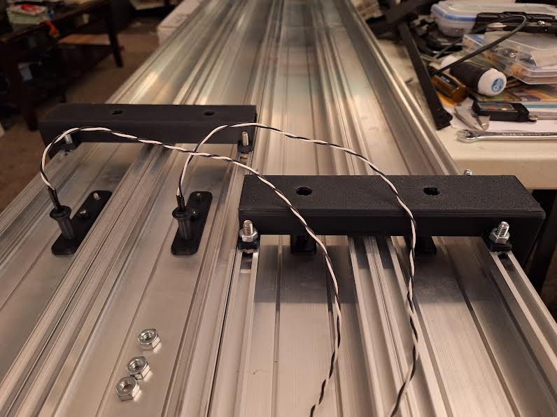 Một vài ghi chú về thiết kế: Lúc đầu đường đua dự tính làm dạng mở nắp (open top) để lộ phần electronics. Sau đó đổi ý là cần có nắp, nên mấy thứ như đèn trạng thái (status light) và công tắc reset phải dời vị trí để có thể thao tác từ bên ngoài. Thay vì in lại, mình khoan lỗ để đi dây ra ngoài, gắn đèn trạng thái và công tắc reset. Nắp cũng được khoan lỗ bắt vít và các gối đỡ nắp (lid supports) được dán cố định.