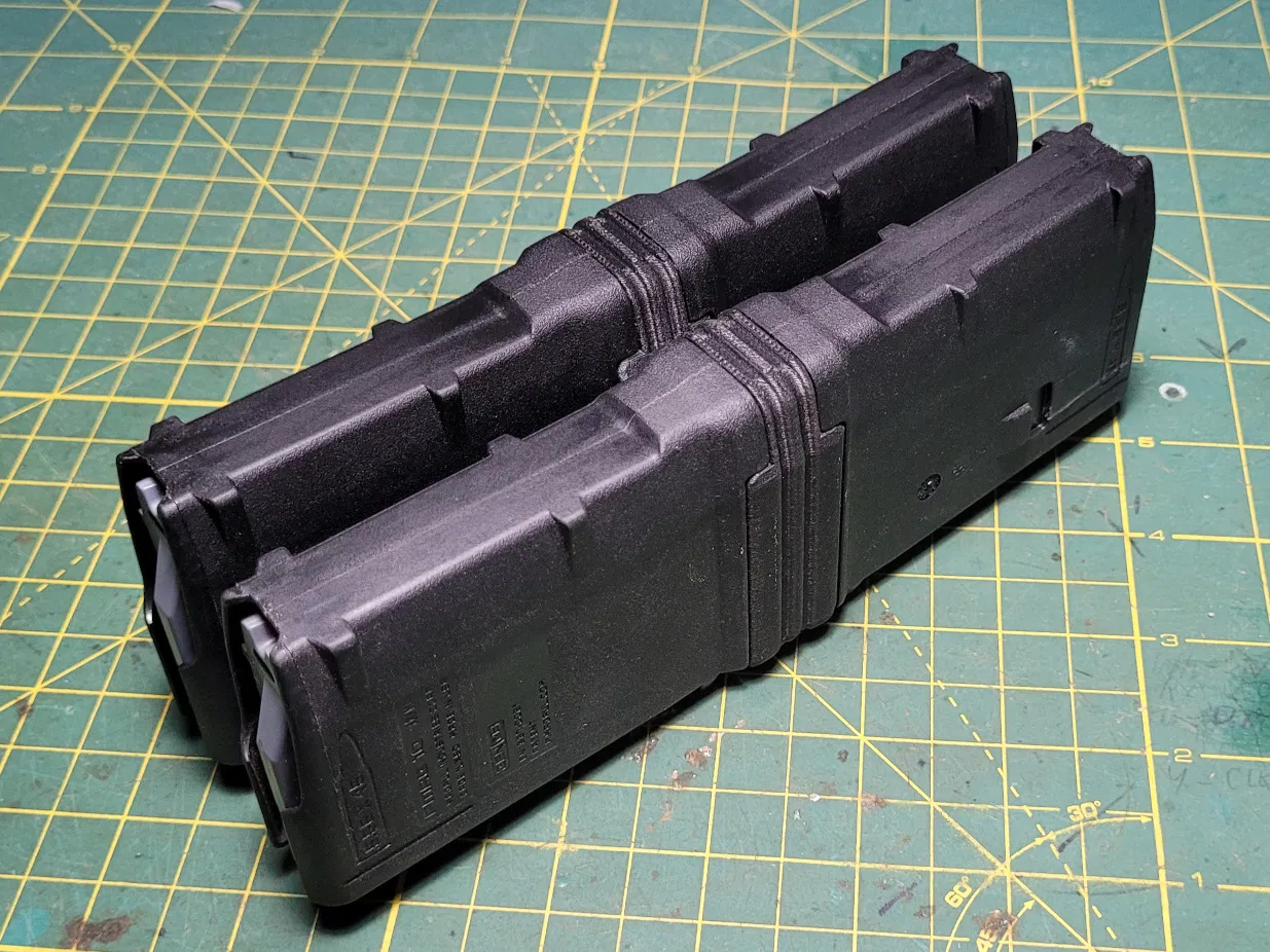 Một mag coupler dạng dọc và ngang cho P-Mag 10 viên và Hochul Mag. Có sẵn các phiên bản cho tất cả P-Mag, tất cả Hochul mag, và bản nửa/nửa.