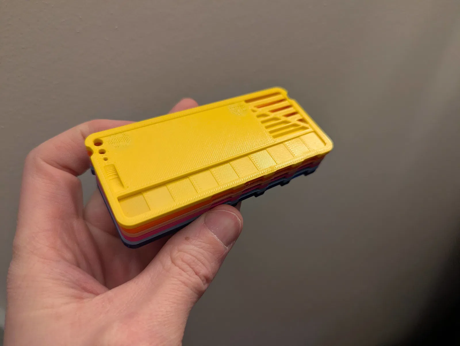 Với cái mẫu này, anh em có thể in ra một miếng nhỏ đại diện cho mỗi cuộn filament mà mình đang có. Nó giống như một bảng màu thu nhỏ, giúp anh em dễ dàng so sánh, lựa chọn màu sắc ưng ý cho dự án tiếp theo của mình. Không chỉ vậy, nó còn là một công cụ tuyệt vời để kiểm tra và hiệu chỉnh máy in 3D. Bằng cách in mẫu này với các cài đặt khác nhau, anh em có thể tinh chỉnh nhiệt độ, tốc độ, hoặc các thông số khác để đảm bảo bản in của mình luôn đạt chất lượng tốt nhất.