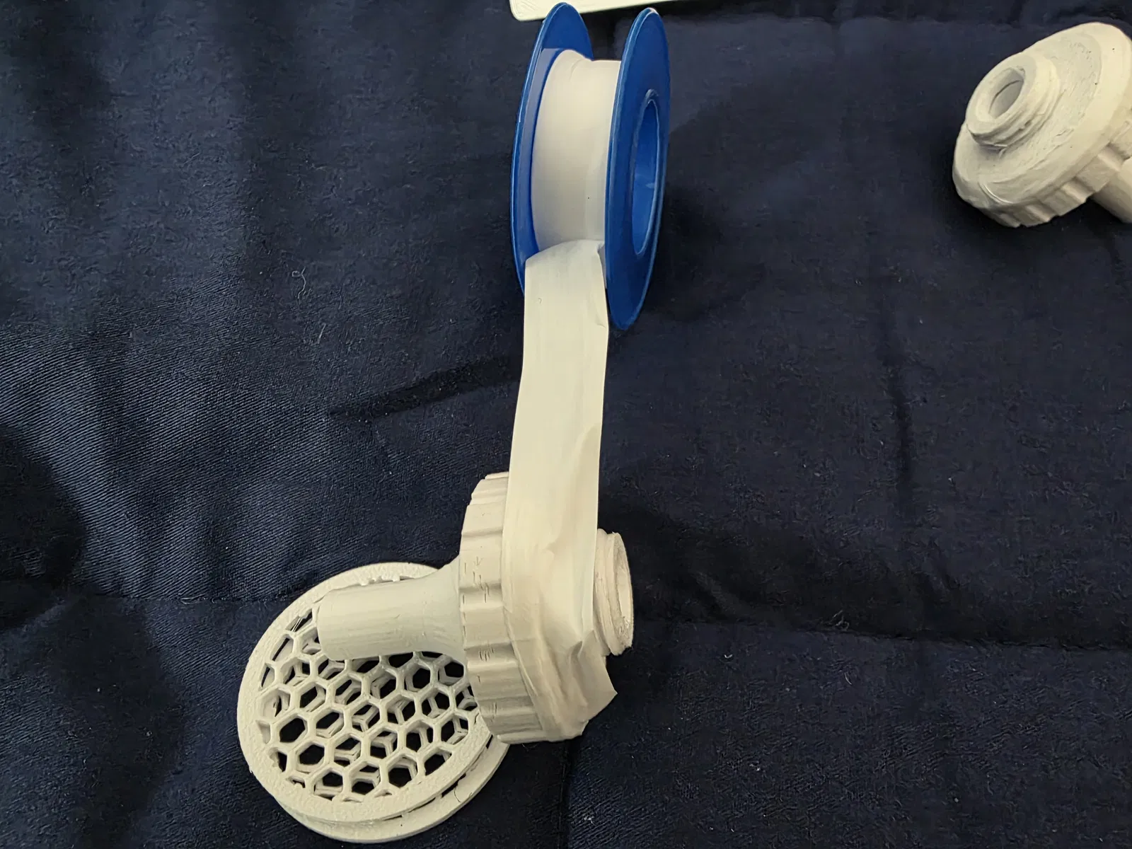 Quấn tất cả ren ngoài 2 vòng tròn bằng PTFE thread tape; cách này hoạt động như o-ring mà không cần “cam kết” gắn o-ring hẳn hoi. Khi cầm chi tiết bằng tay trái, quấn theo chiều kim đồng hồ, để phần đuôi cuộn băng keo thò ra phía dưới hướng về phía bạn.