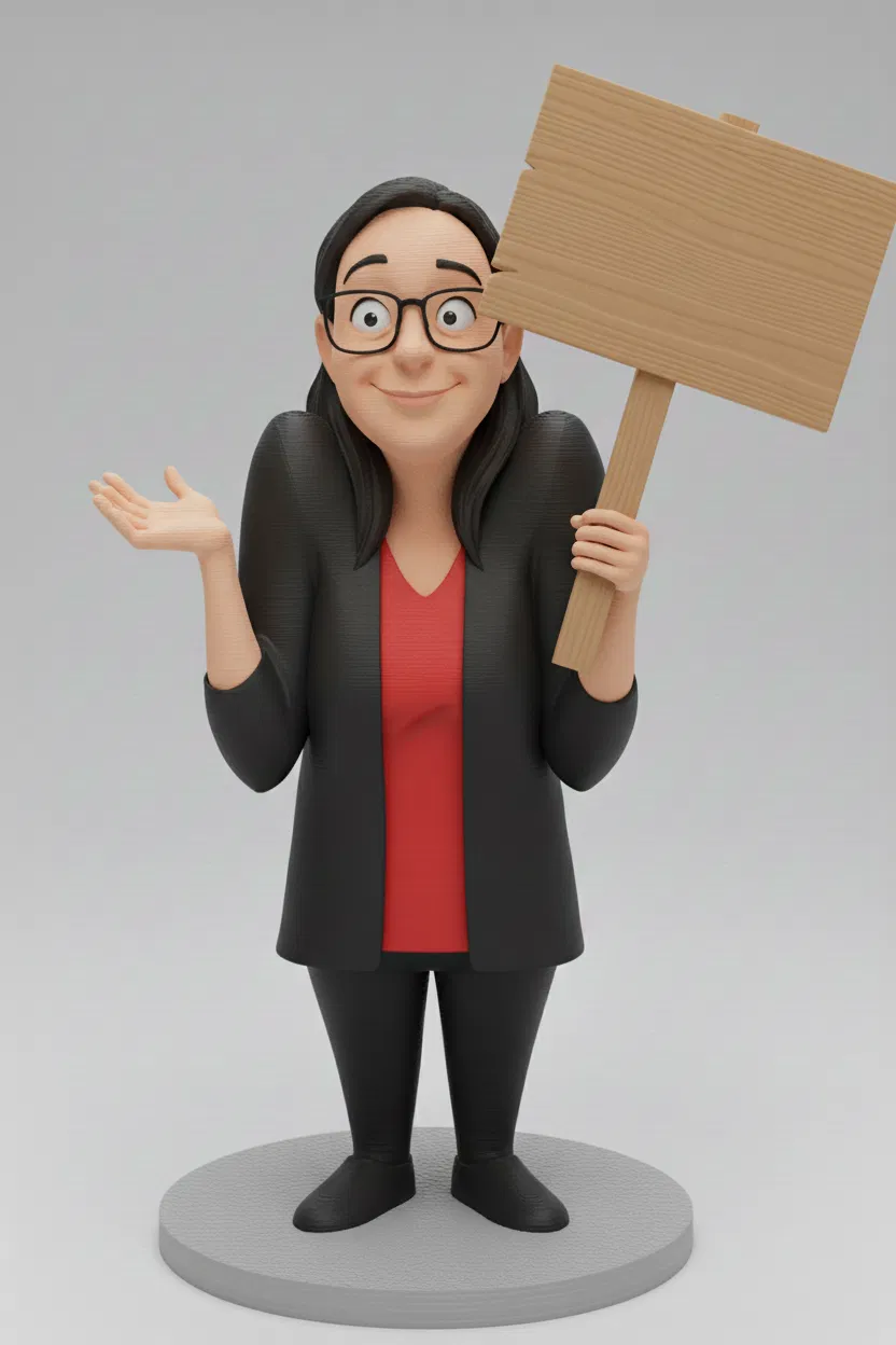 Mô hình "I Know Nothing" khắc họa một nhân vật nữ với biểu cảm khuôn mặt ngây ngô, đôi mắt mở to tròn xoe sau cặp kính, và nụ cười nửa miệng đầy ẩn ý. Tay trái của nhân vật giơ lên một cách tự nhiên, như đang bày tỏ sự không hiểu hoặc đơn giản là "không liên quan". Điểm nhấn đặc biệt chính là tấm bảng gỗ mà nhân vật đang cầm trên tay phải, một "blank slate" hoàn hảo để bạn có thể tự do sáng tạo thông điệp của riêng mình. Với phong cách thiết kế hoạt hình dễ thương và màu sắc hài hòa, mô hình này chắc chắn sẽ thu hút mọi ánh nhìn và mang lại những giây phút thư giãn, vui vẻ.