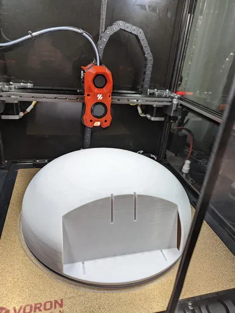 Snoopy được thiết kế trong Fusion 360 và in bằng Voron 2.4r2 350mm và Prusa MK3S. Nó có một vi điều khiển ESP32, firmware Arduino, hai động cơ với một bánh xe xoay, một cảm biến quét laser (và trong phiên bản tiếp theo sẽ có một Raspberry Pi Pico với các servo). Nó có một chiếc điện thoại thông minh cũ hoặc máy tính bảng 7" làm màn hình, microphone, âm thanh và IMU.