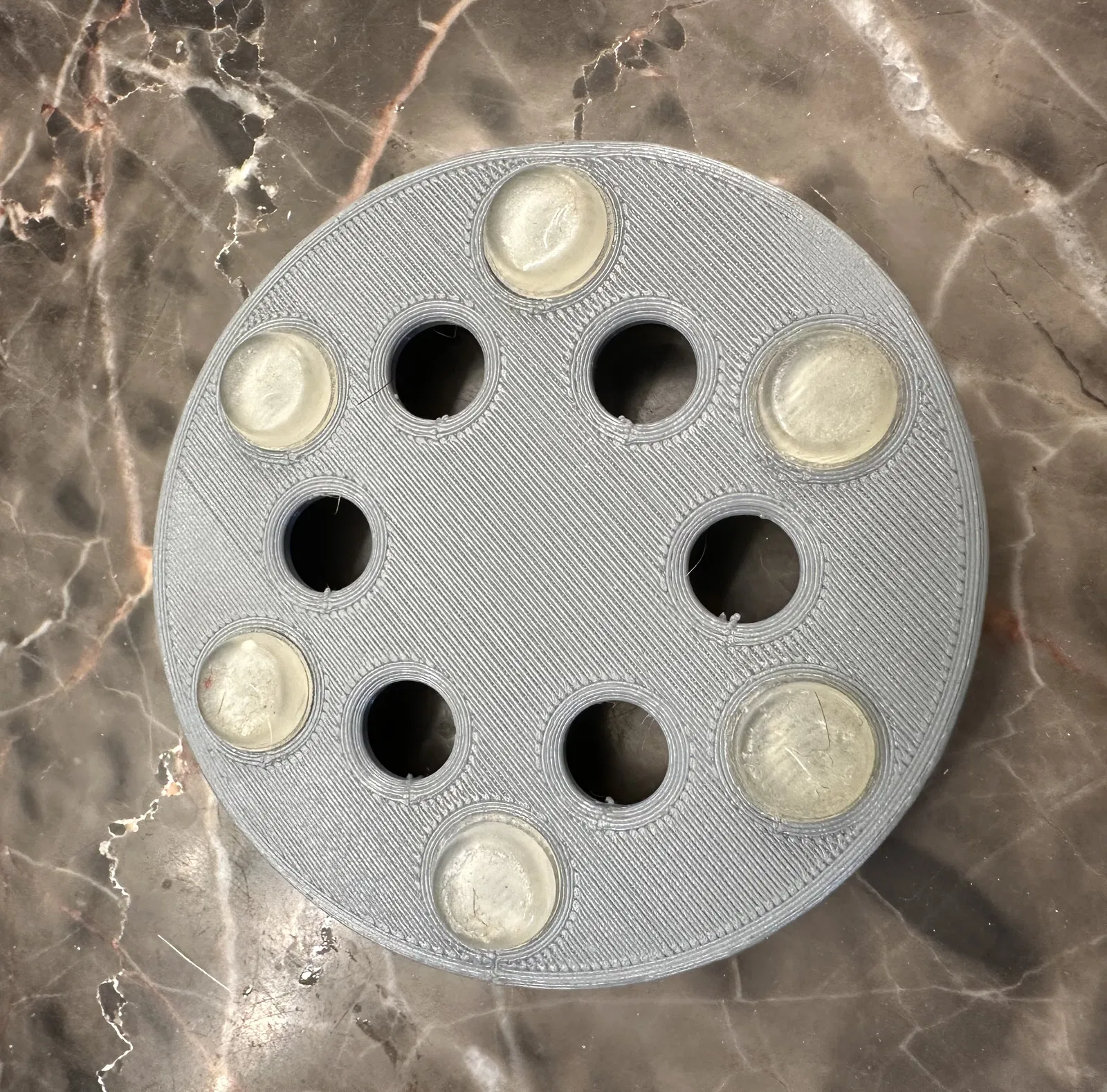 Vấn đề mình gặp với mấy bình/bộ soap dispenser là do nước nhỏ giọt nên phần đáy thiết bị hay bị ướt. Lâu ngày sẽ tạo môi trường bên dưới dễ bị mốc. Cái pod này làm ra để giải quyết chuyện đó. Nó giúp nâng đáy soap dispenser lên, không còn tiếp xúc trực tiếp với bề mặt có thể bị ướt. Các lỗ trên pod cho phép không khí lưu thông và giúp phần đáy thoát nước.