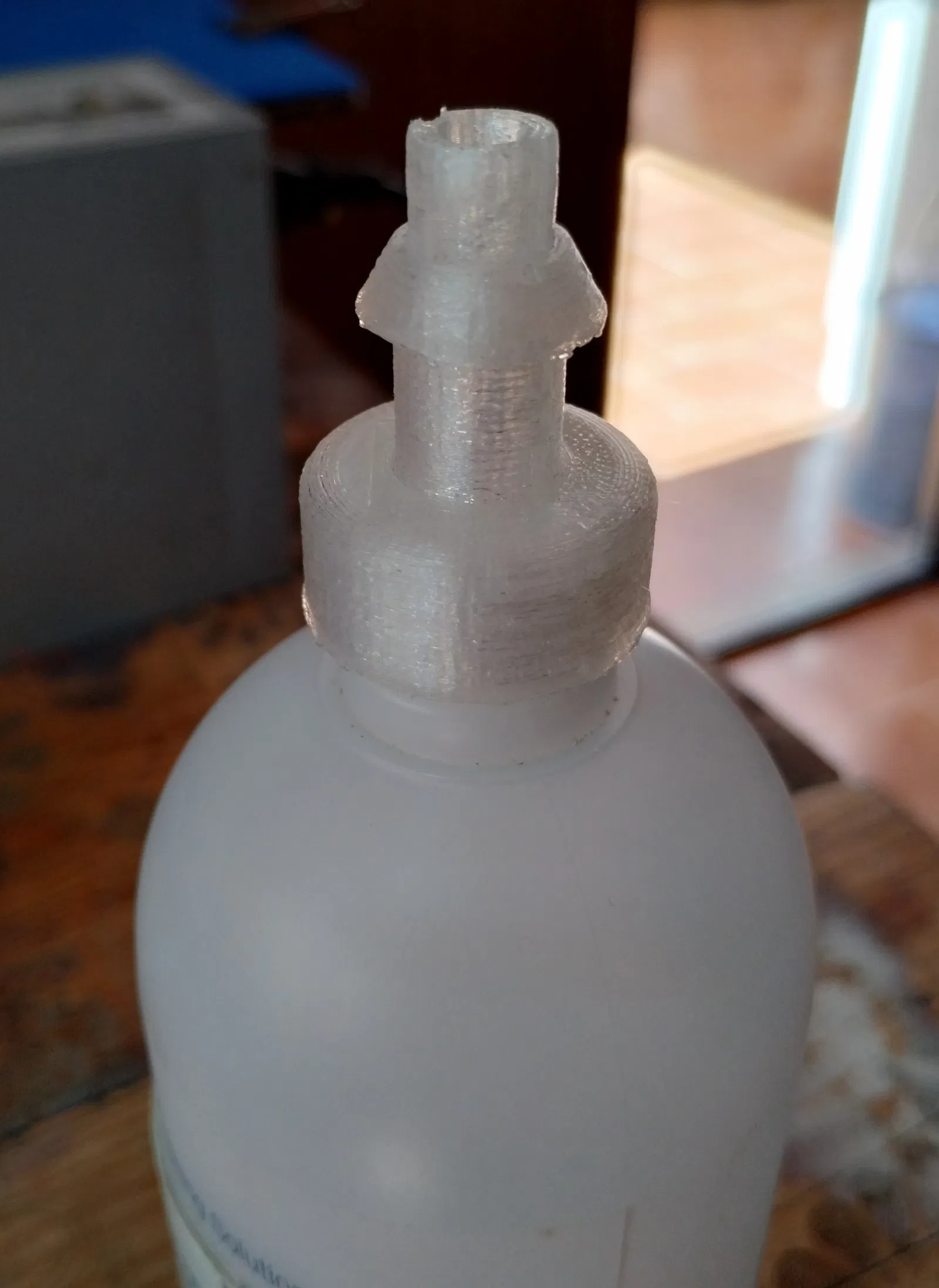 Mẫu Bottle Cap có vòi (nozzle) để thay thế nắp chai bị mất/hư. Ren (thread) dạng tiêu chuẩn, nhưng nên kiểm tra dung sai (tolerance) trước khi in. Phần nozzle có cơ chế khóa để gắn thêm phụ kiện khi cần.