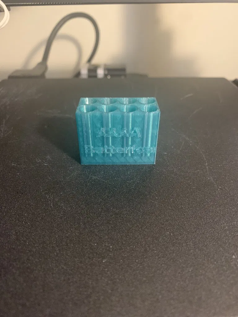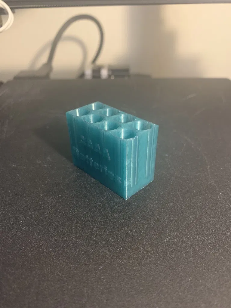 Một mẫu khay giữ pin AAAA đơn giản giúp bạn sắp xếp gọn gàng. In bằng PLA. Thiết kế không ôm quá chặt vì có thể làm rách lớp bọc bên ngoài của pin, nhưng rất hợp để để trong ngăn kéo, trên bàn làm việc hoặc kệ, giữ pin dễ lấy mà không cần để trong bao bì gốc.