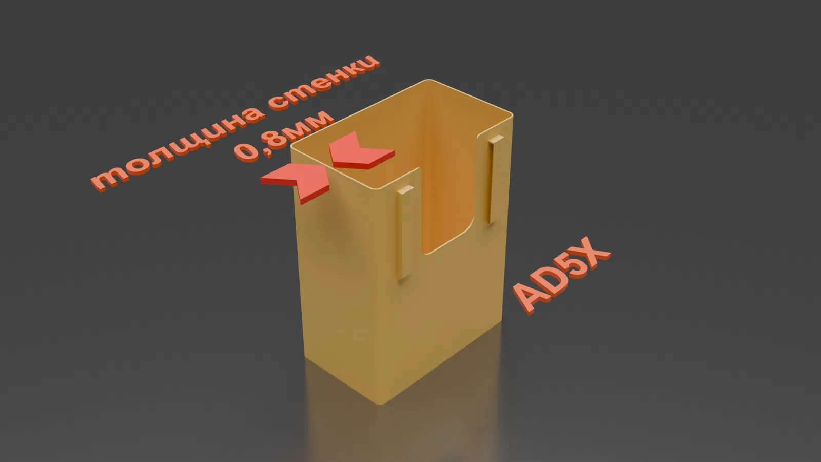 Mẫu hộp chứa tháo rời để vệ sinh Flashforge AD5X với vách dày 0,8mm, ưu tiên tiết kiệm nhựa và rút ngắn thời gian in nên độ bền không cao. Đây là bản chỉnh sửa nhẹ hơn từ một mẫu có sẵn.
